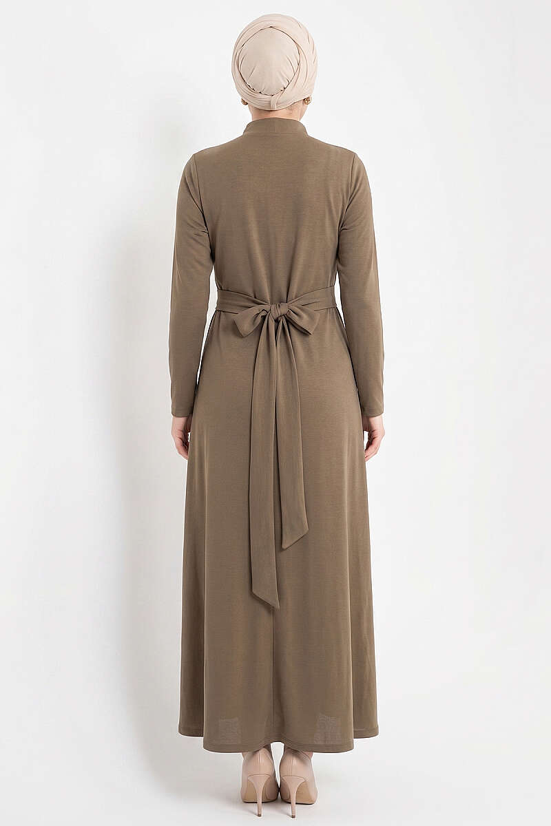 Kemer Kapaklı Kot Elbise Kahve