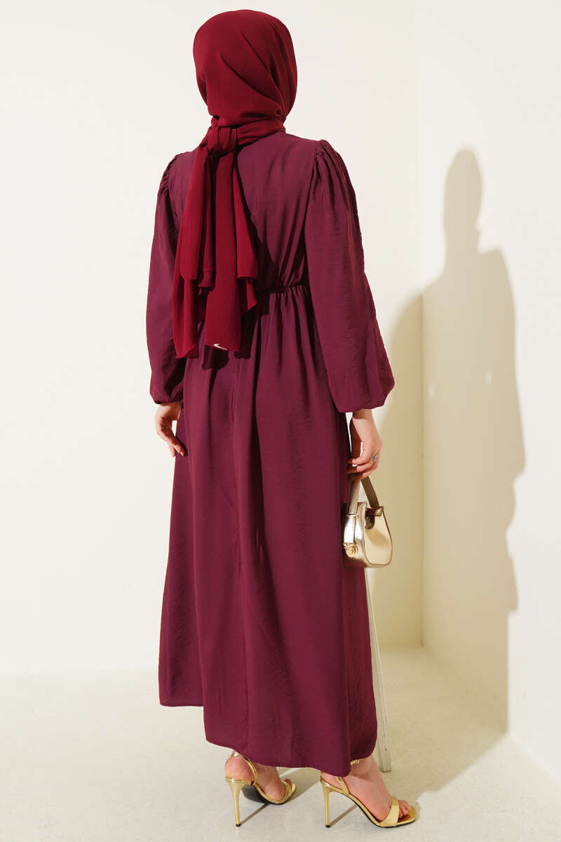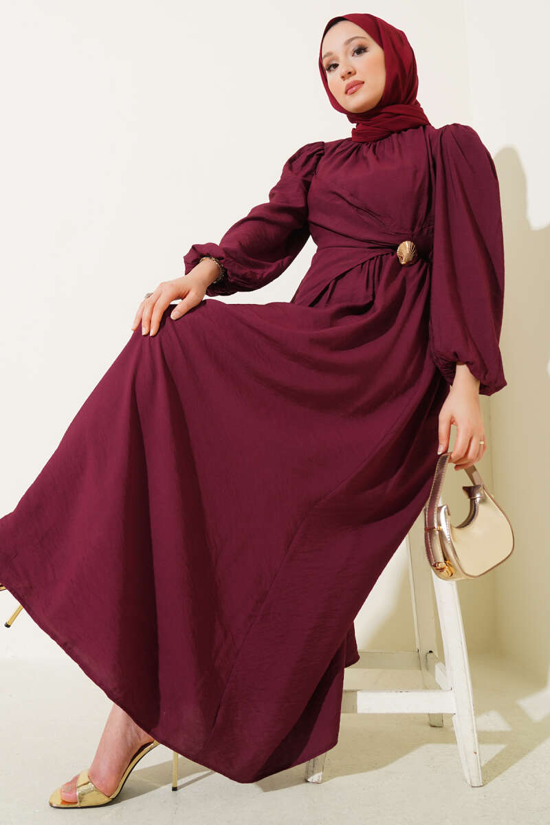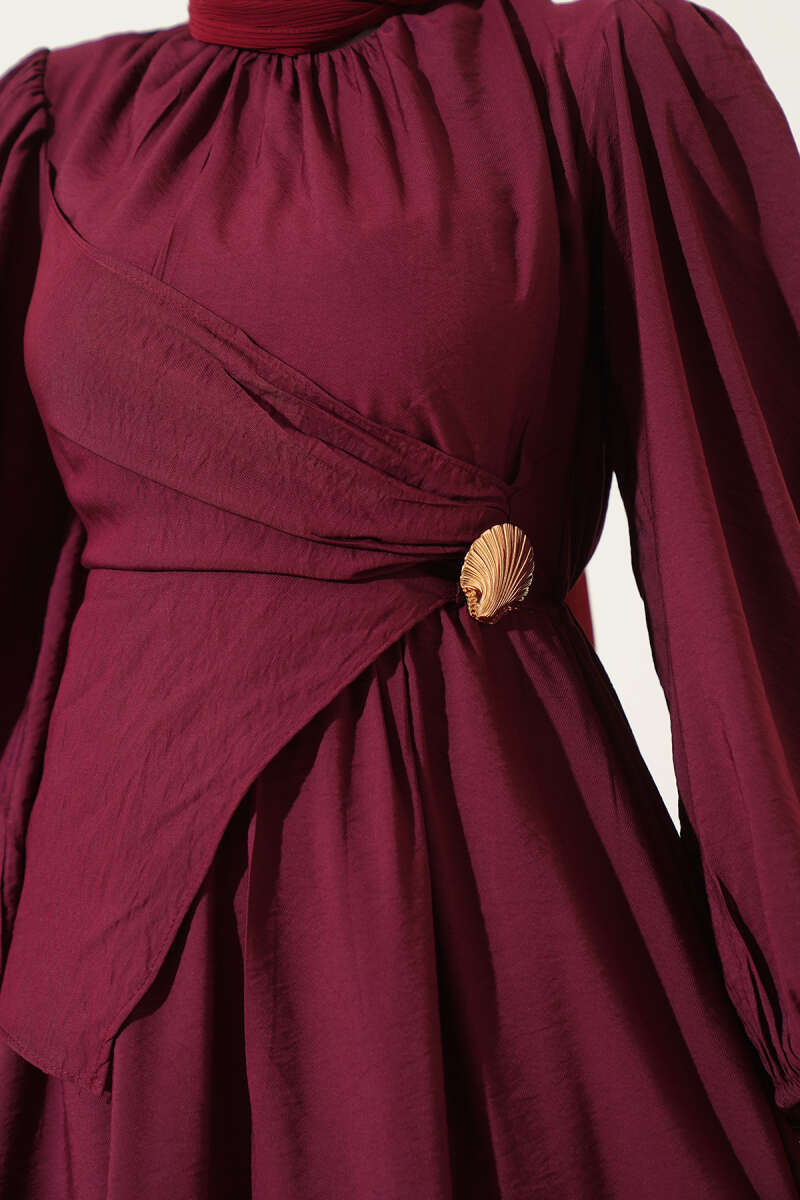 Omuz Pelerinli Taş Detaylı Abiye Elbise Bordo