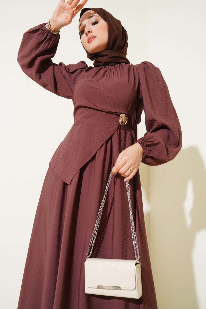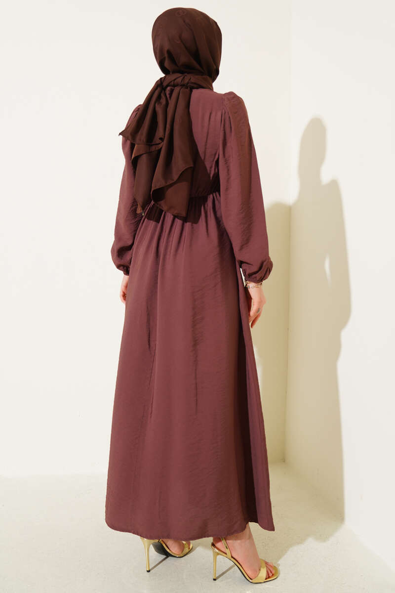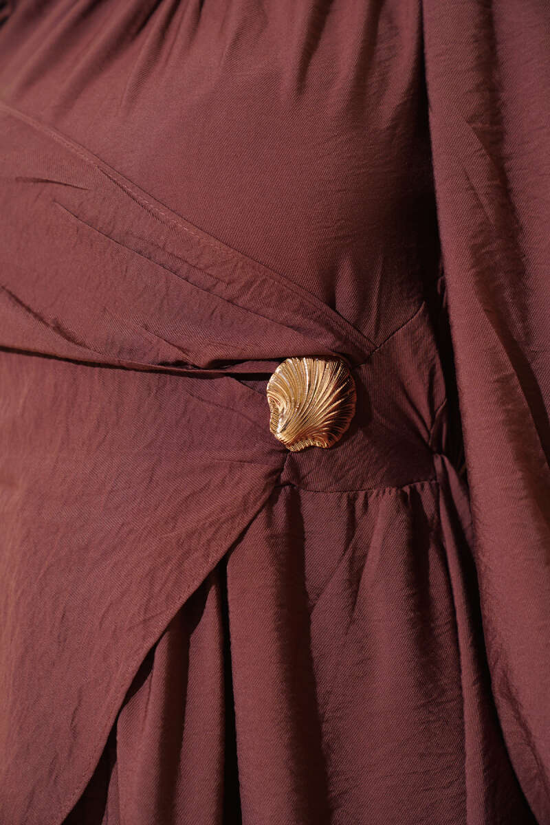 Omuz Pelerinli Taş Detaylı Abiye Elbise Bordo
