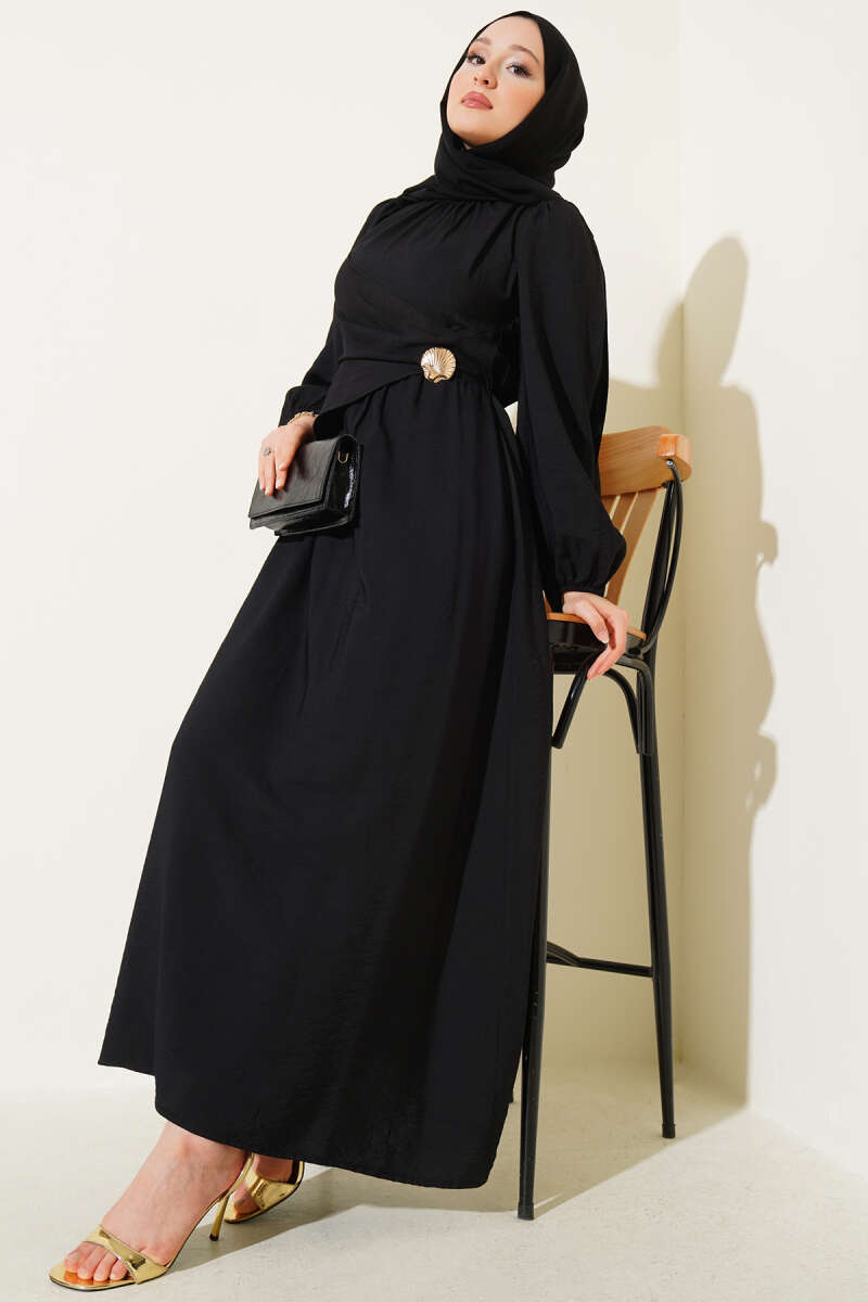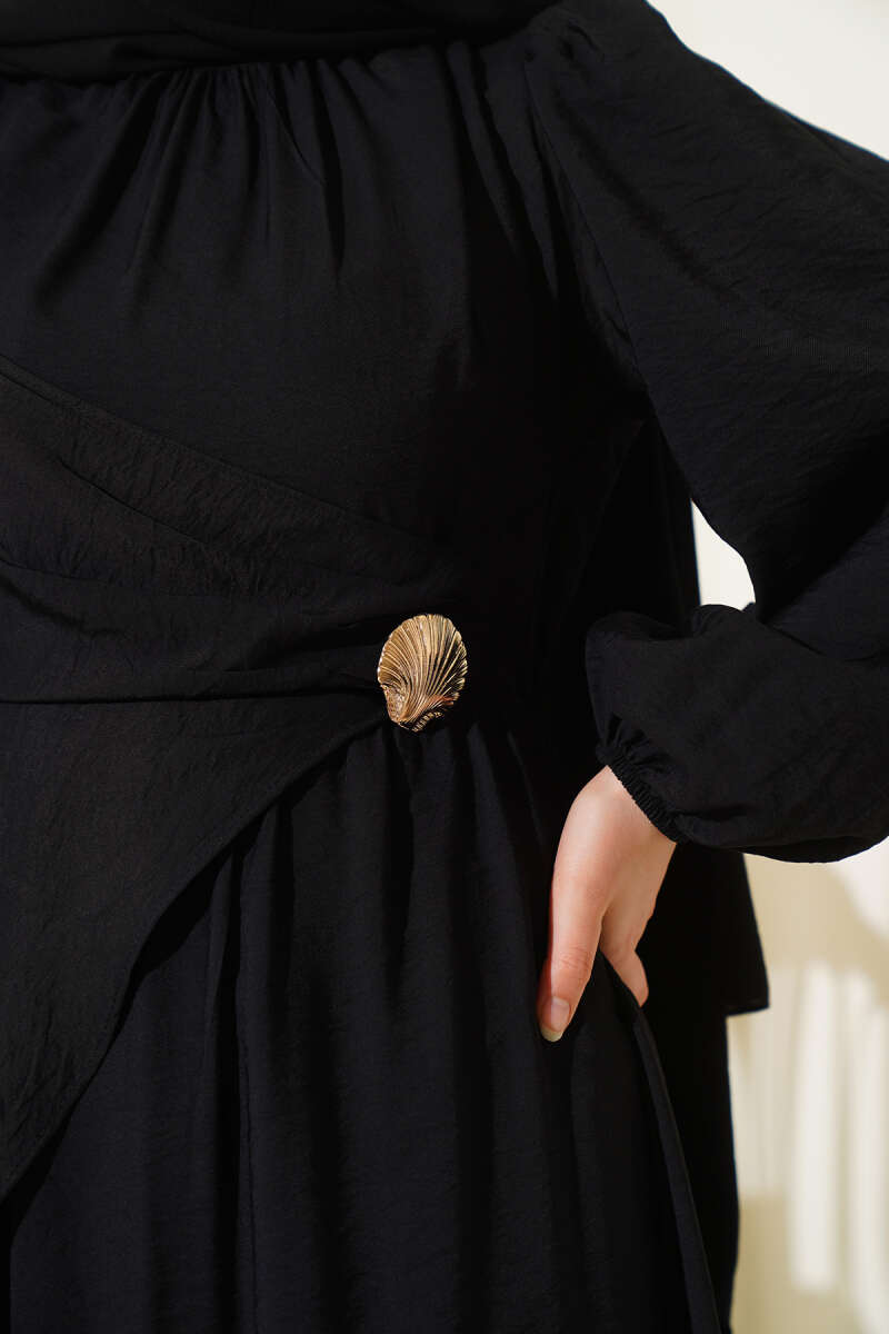Pötikareli Yanları Büzgü Detay Siyah Tunik