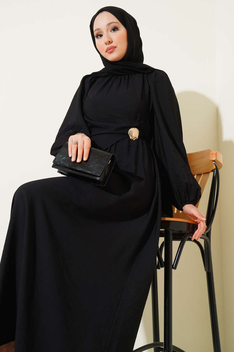 Omuz Pelerinli Taş Detaylı Abiye Elbise Siyah