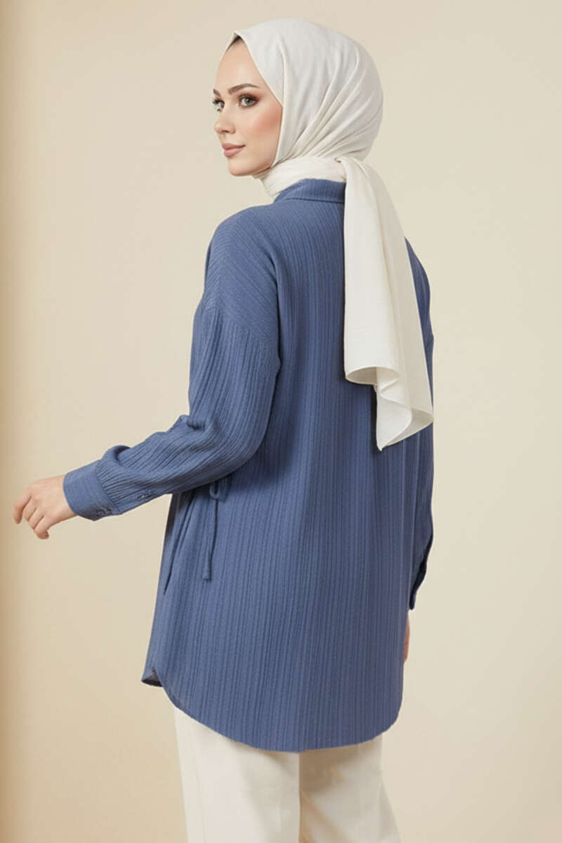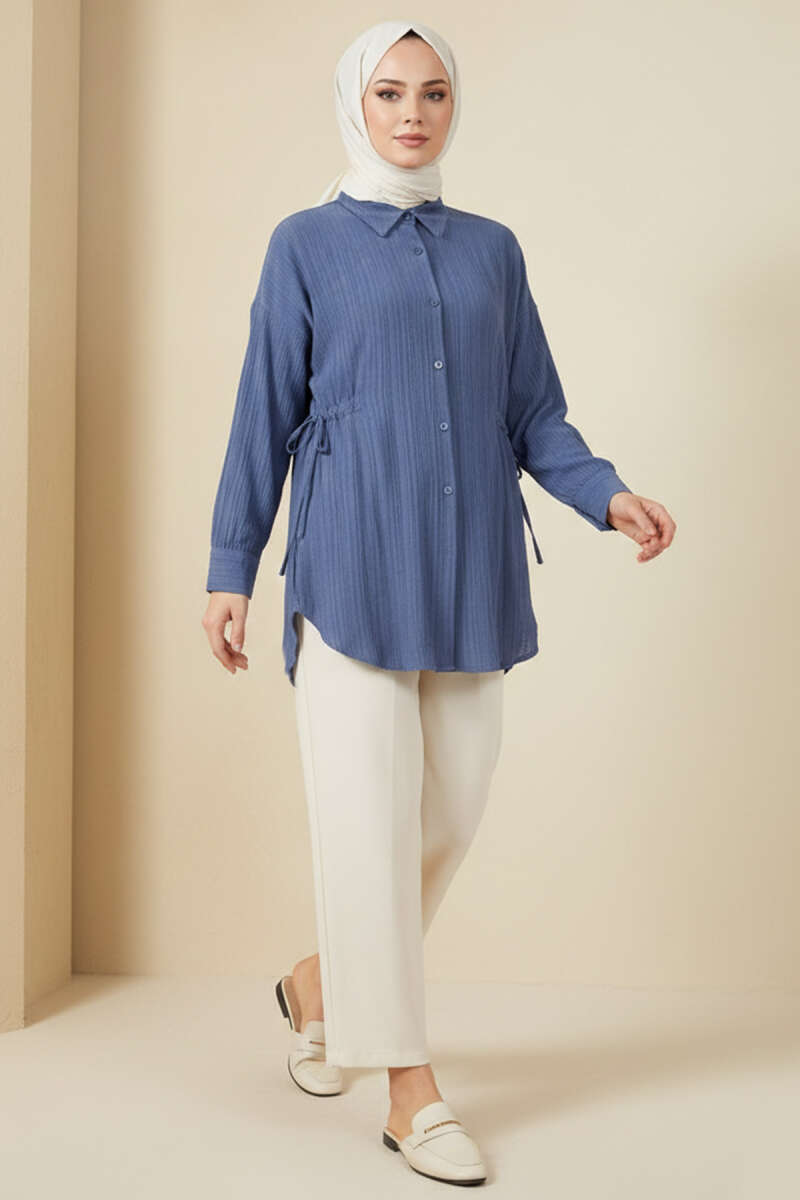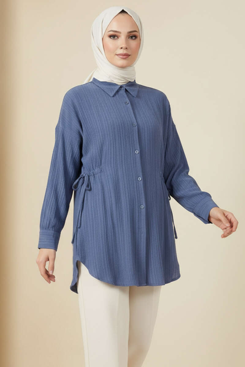 Yandan Büzgülü Krinkıl Gömlek İndigo
