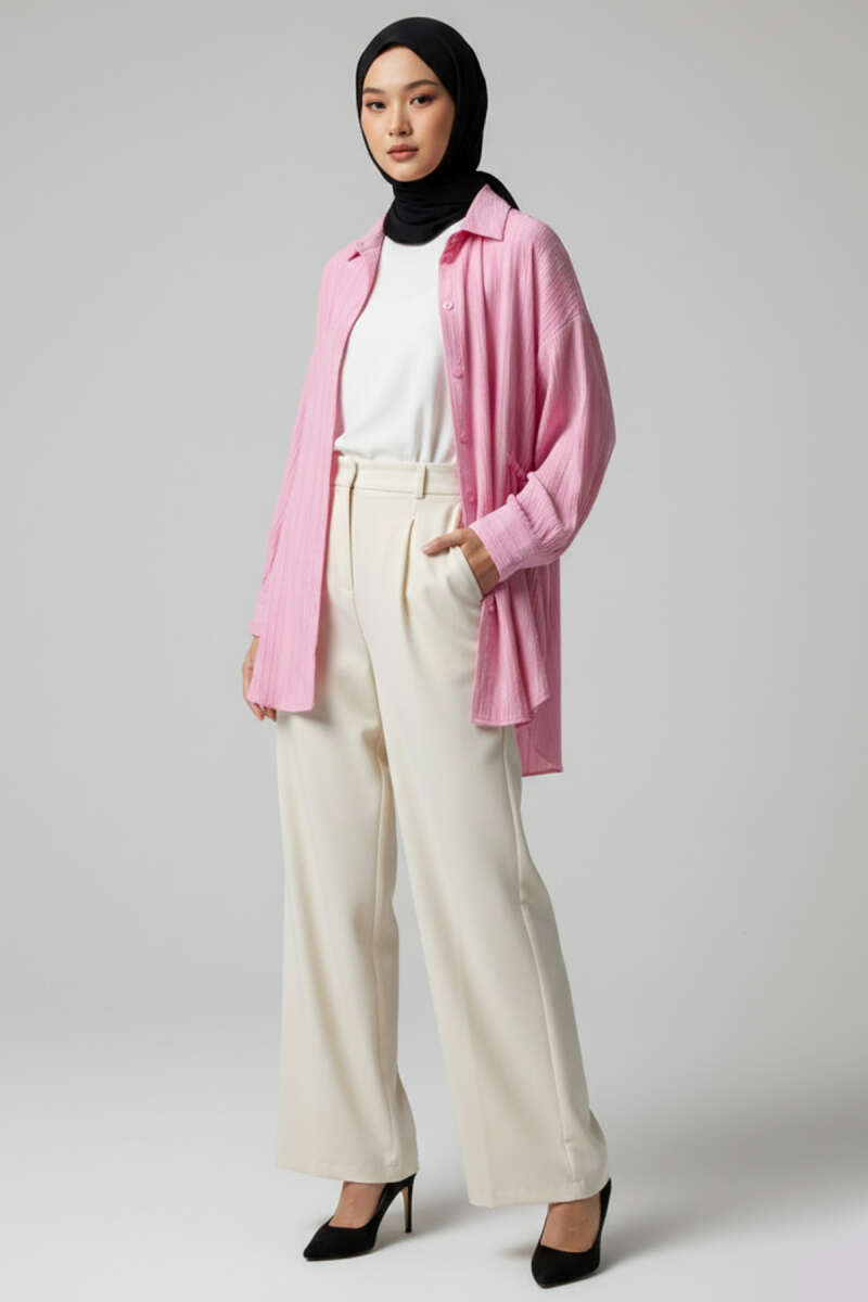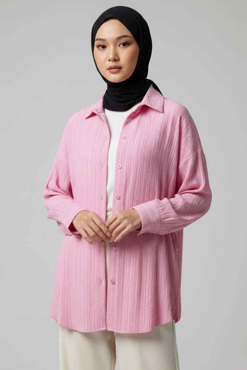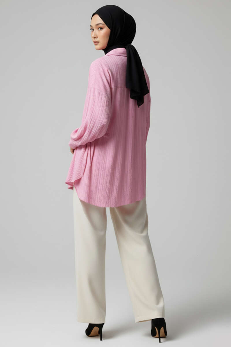 Yandan Büzgülü Krinkıl Gömlek Pembe