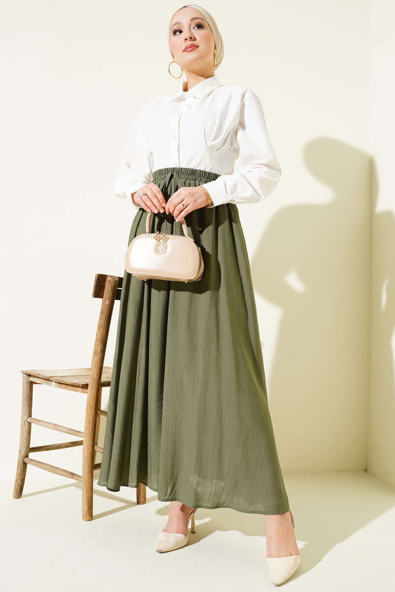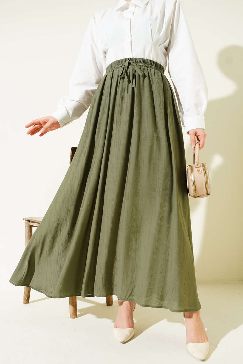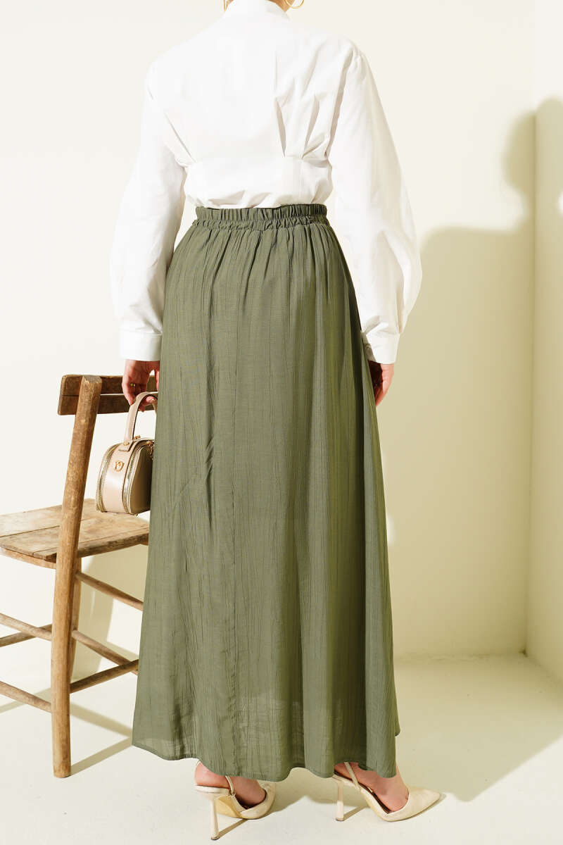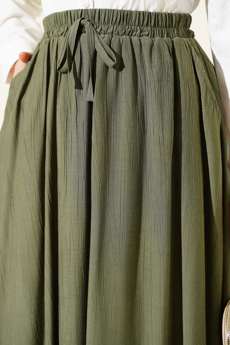 Yandan Cep Detaylı Kloş Etek Haki