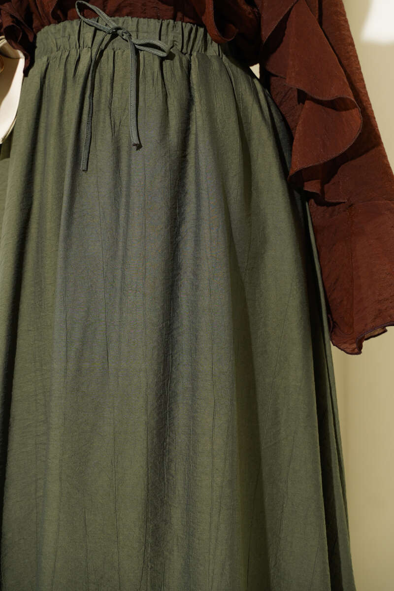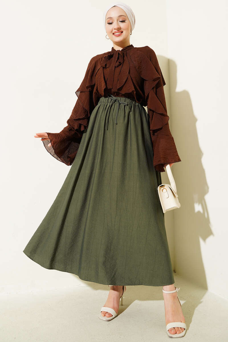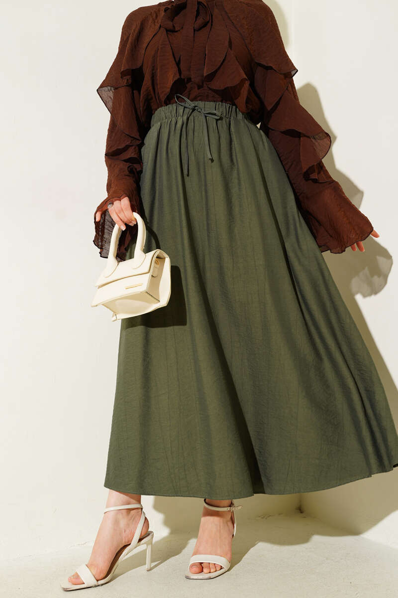 Beli Kemerli Lastikli Pileli Etek Kiremit