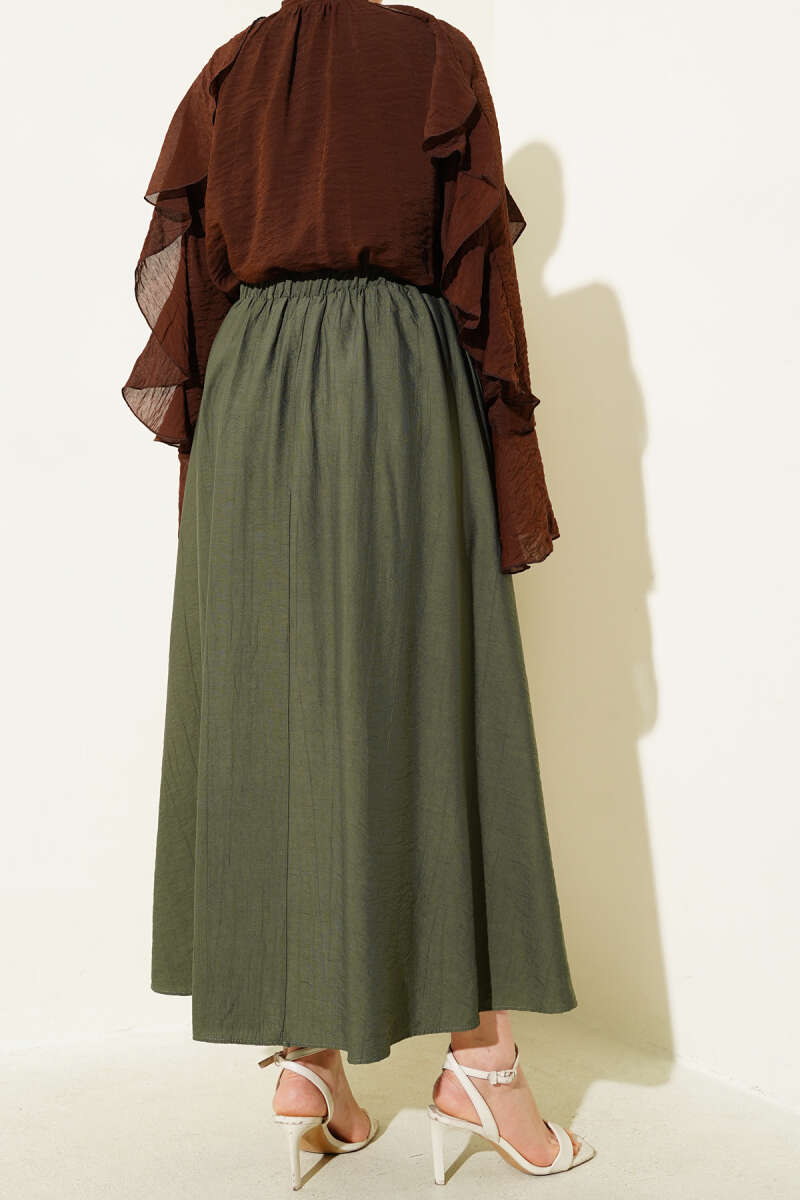 Kemerli Ekose Desenli Etek Haki