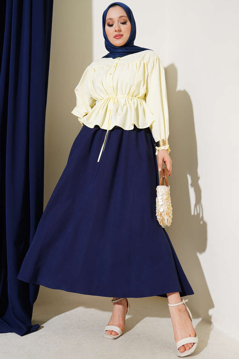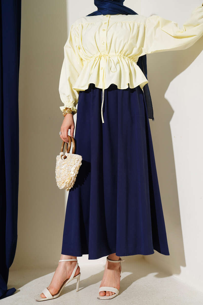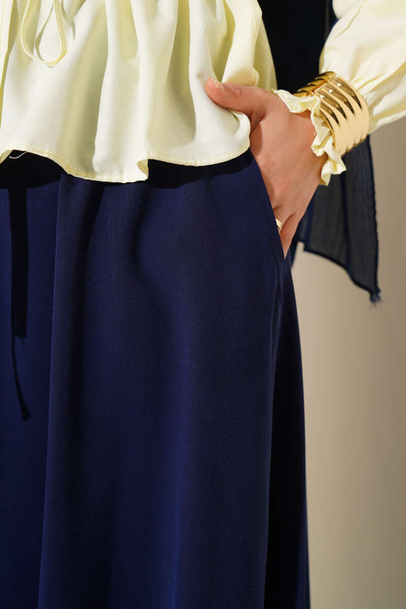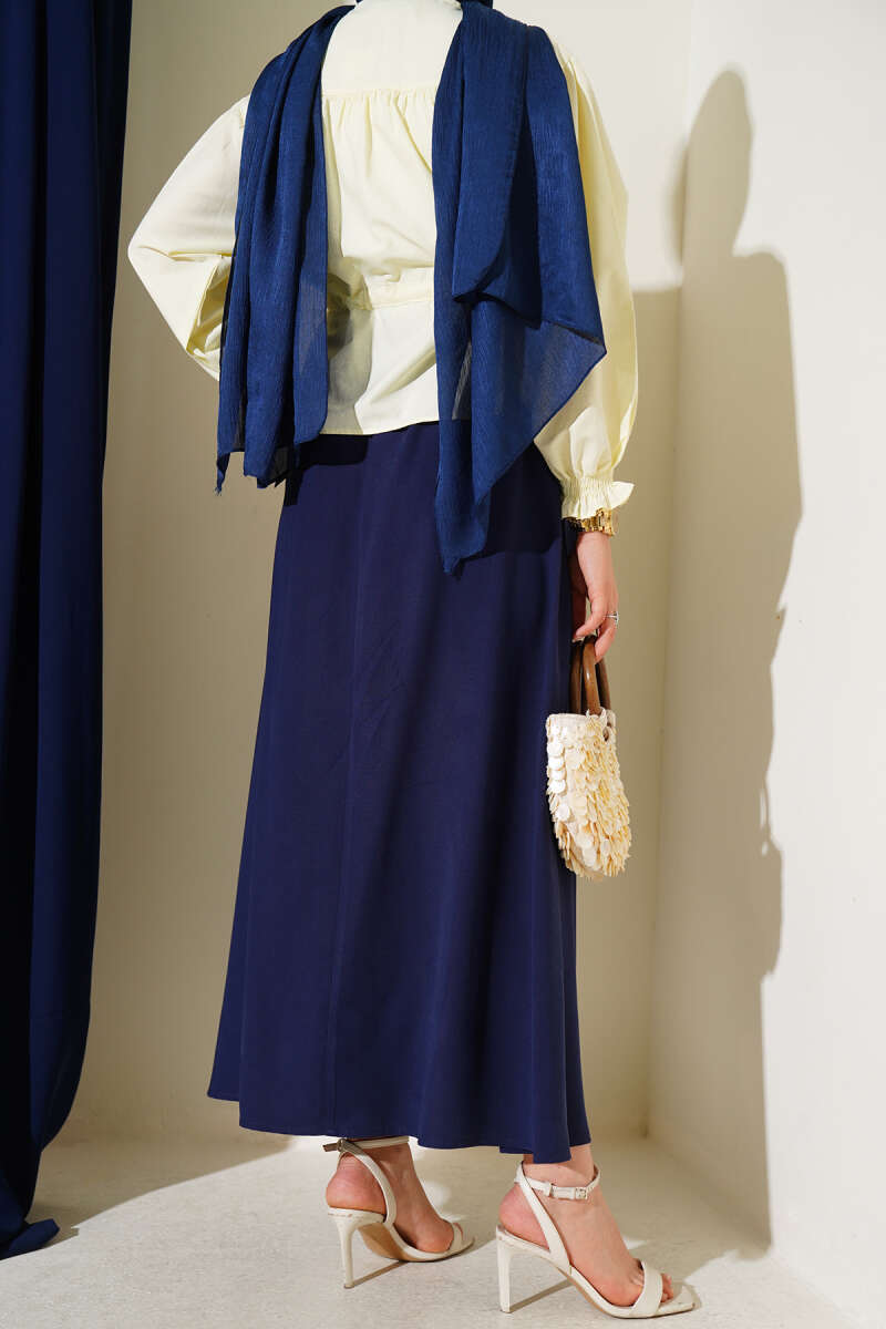 Süet Bel Fermuarlı Çan Etek Lacivert