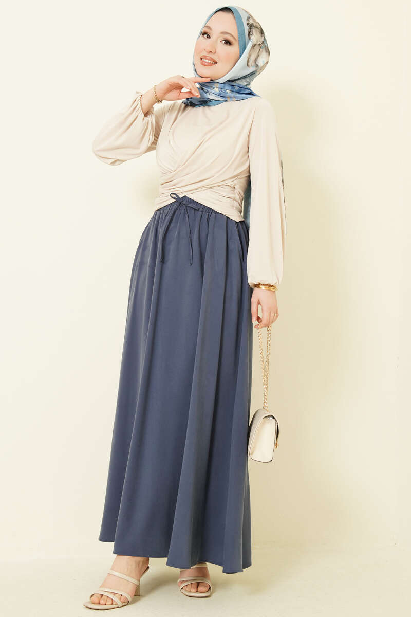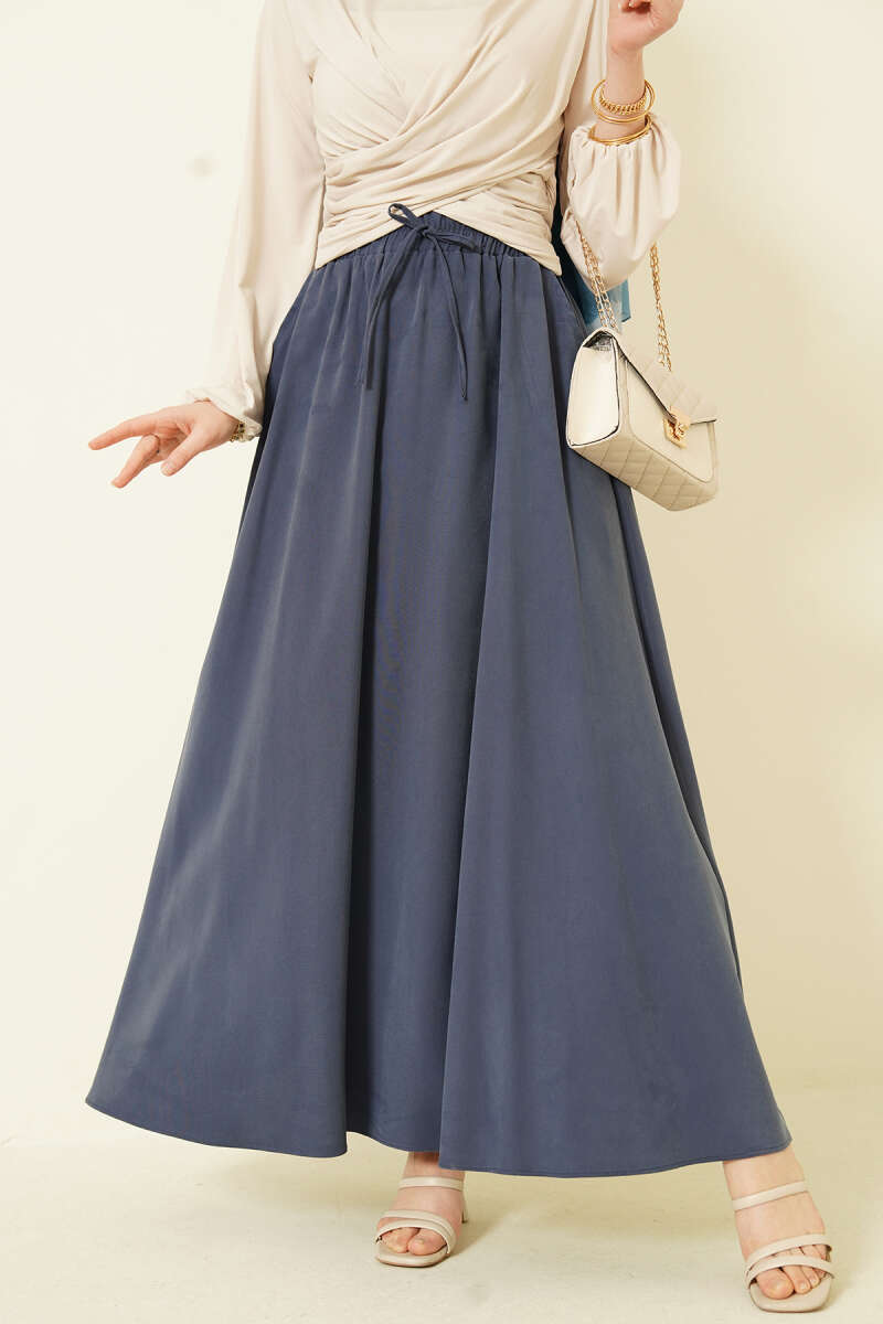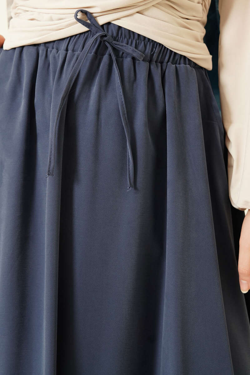Bel Lastikli Saten Etek Lacivert
