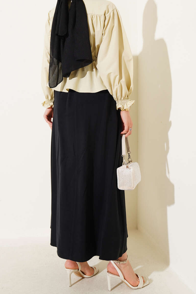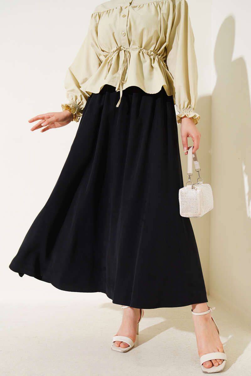 Süet Bel Fermuarlı Çan Etek Siyah