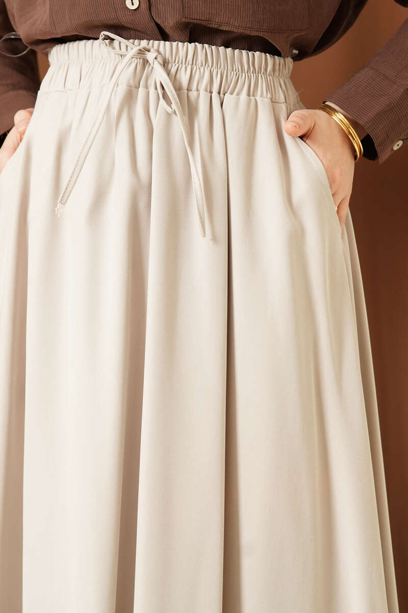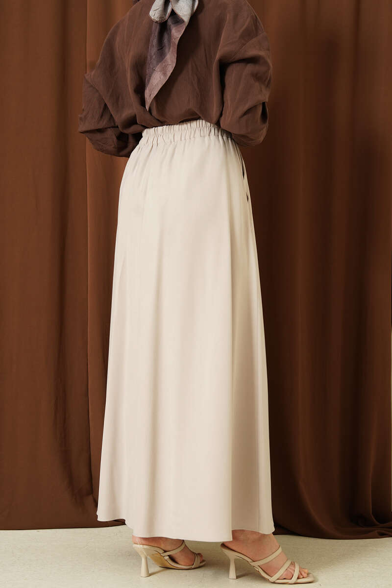 Kloş Beli Lastikli Saten Etek Acı Kahve