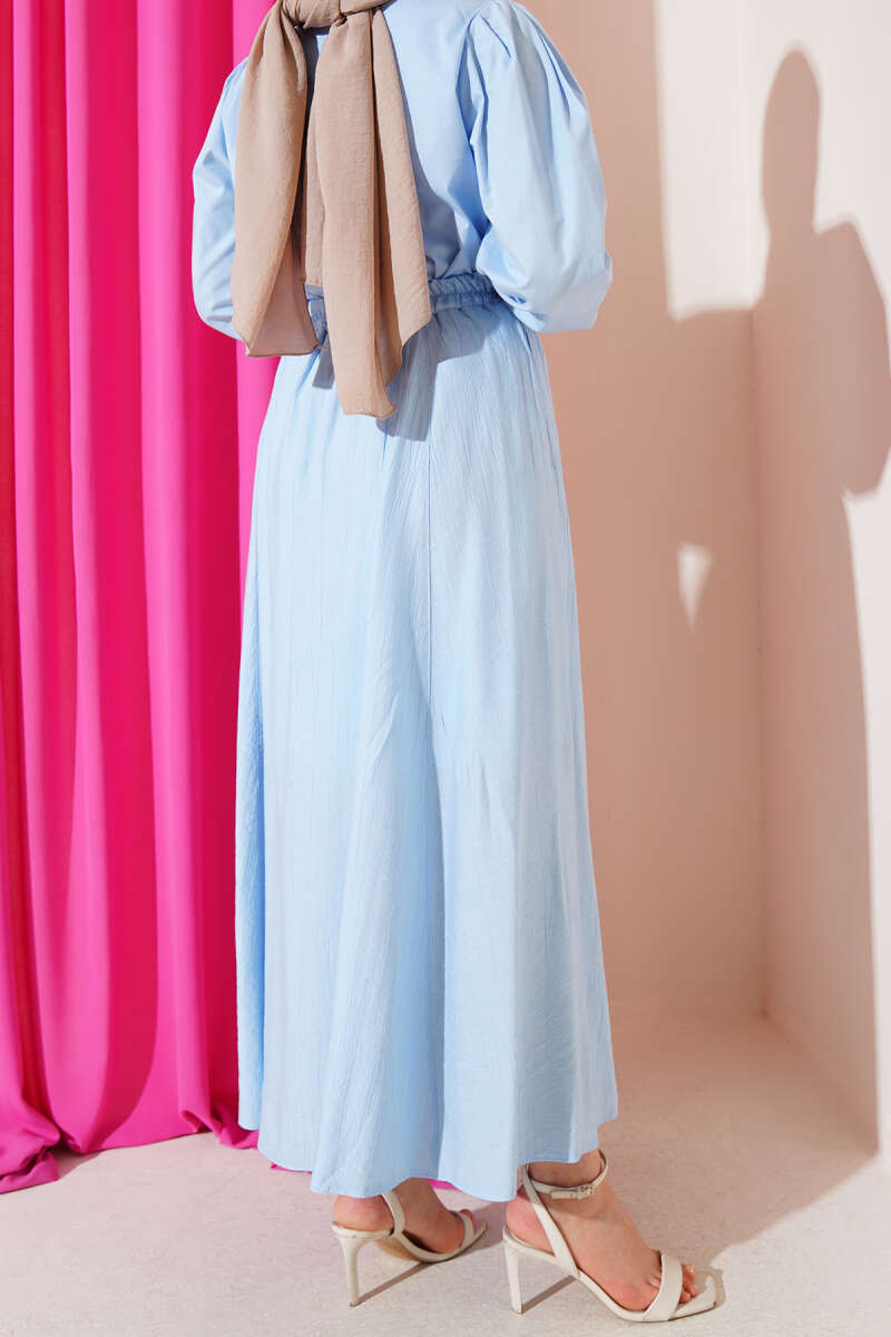 Kemerli Ekose Desen Kloş Etek Lacivert