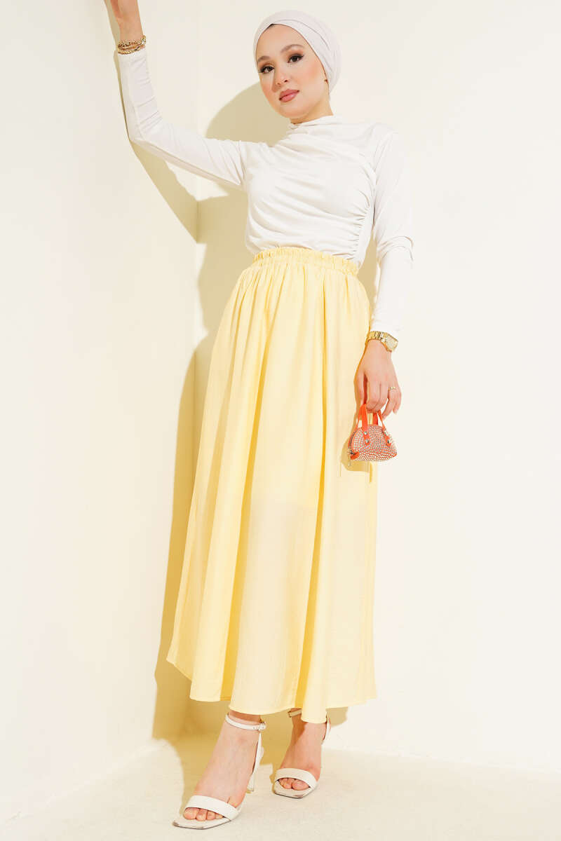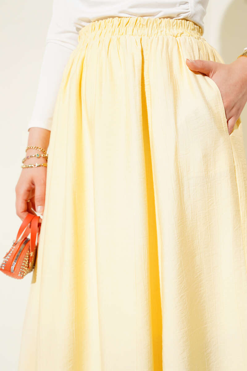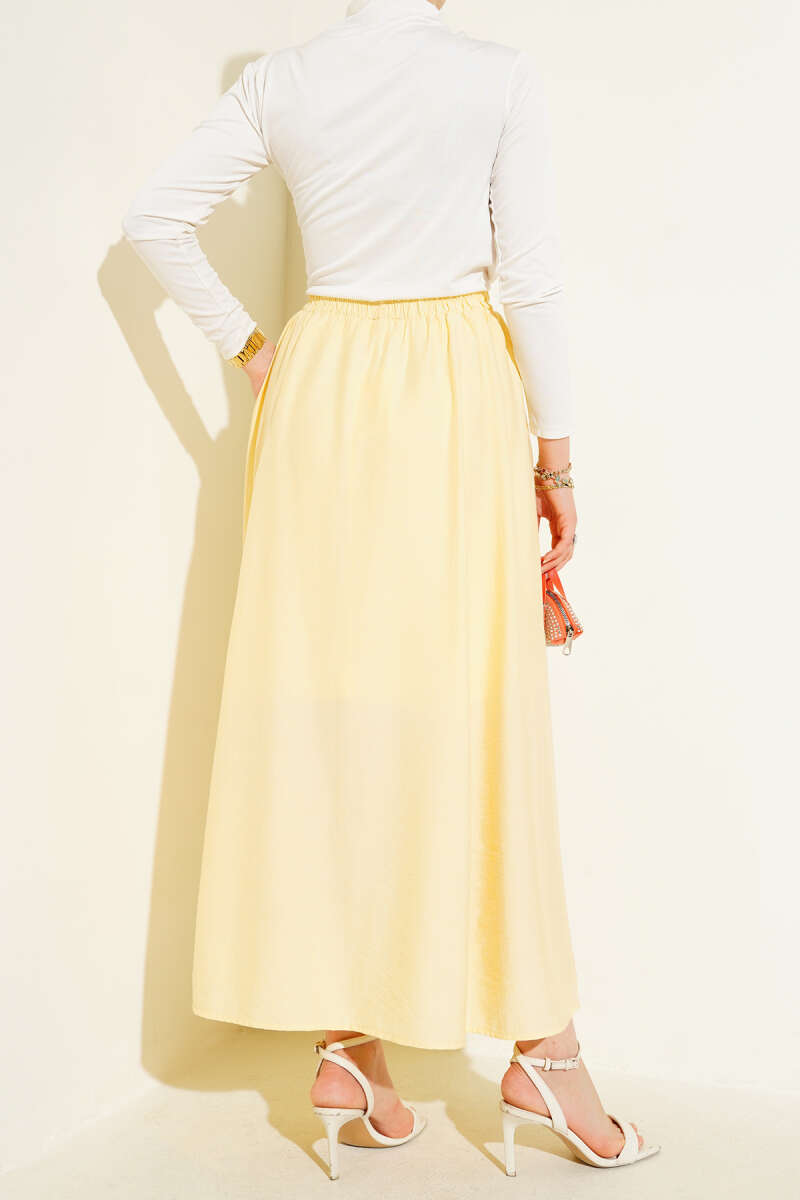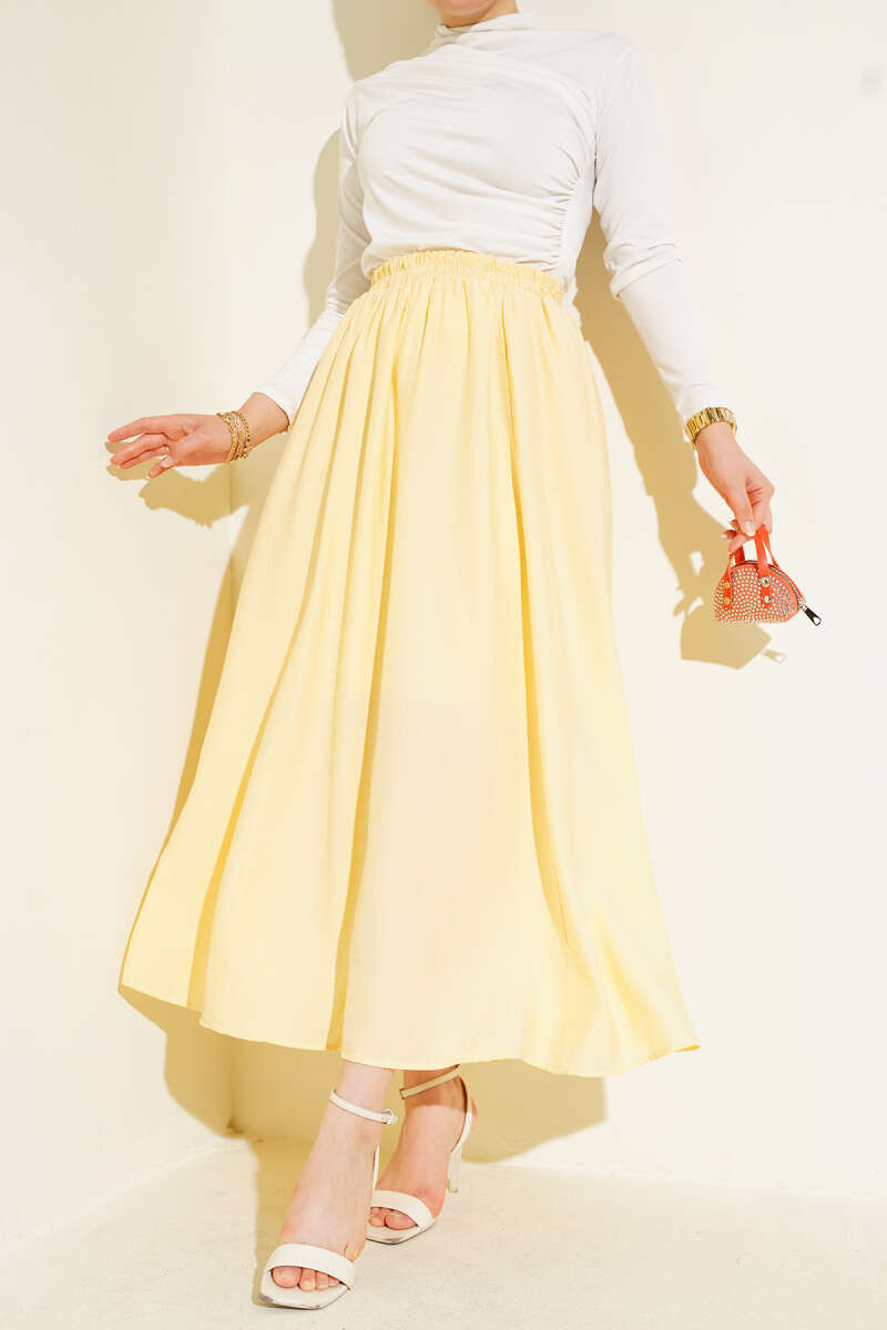 Beli Lastikli Ekose Desen Kloş Etek Bej