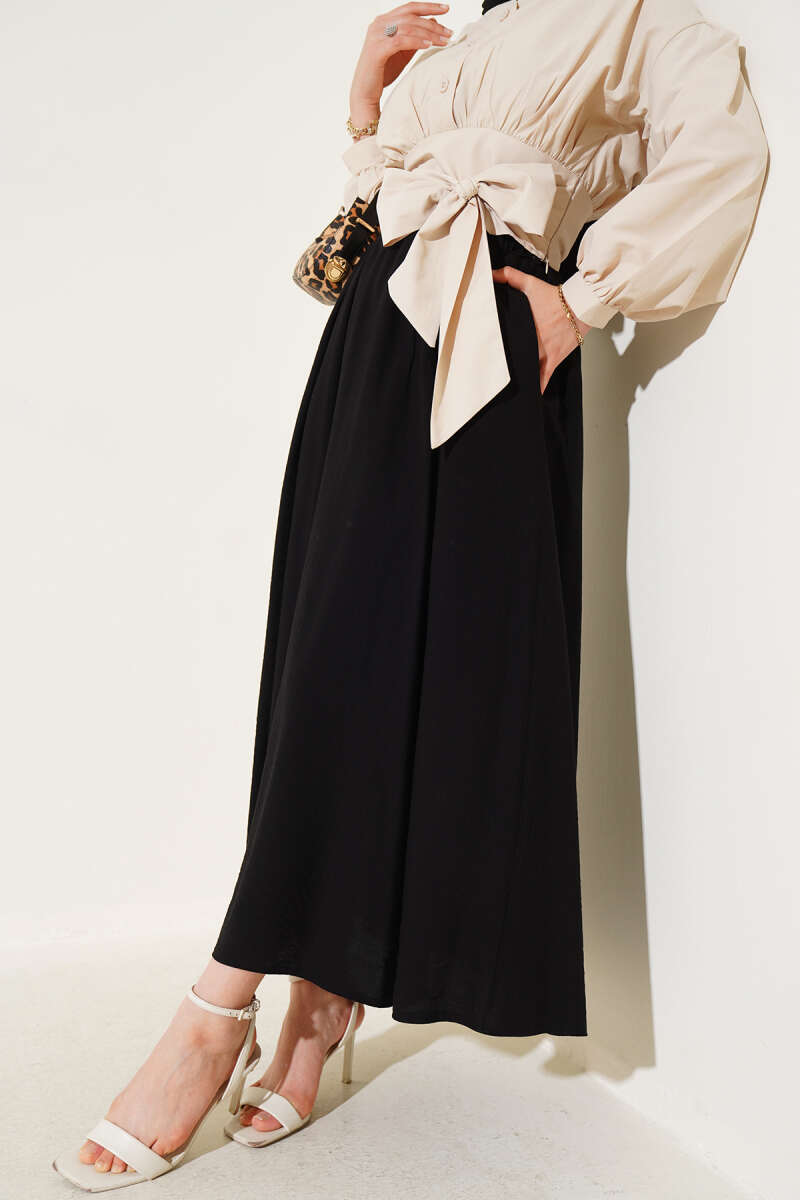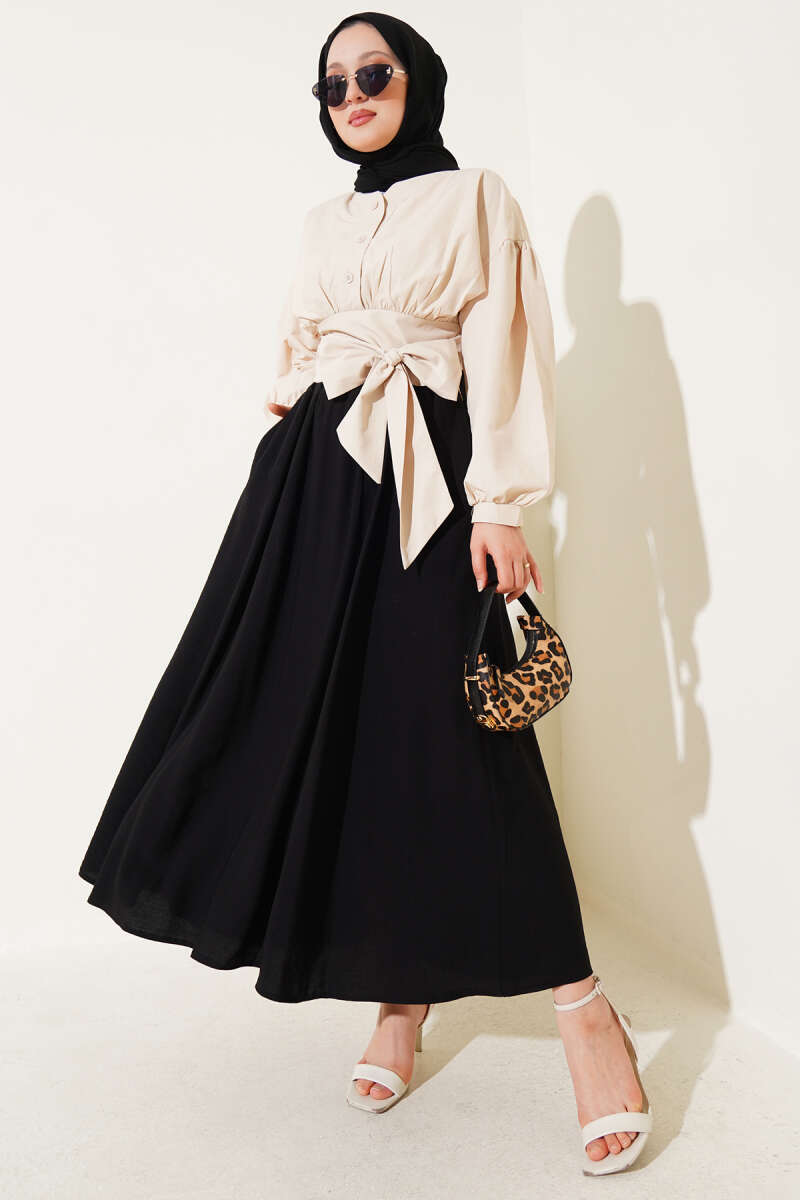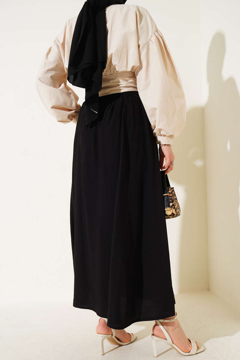 Beli Lastikli Ekose Desen Kloş Etek Siyah