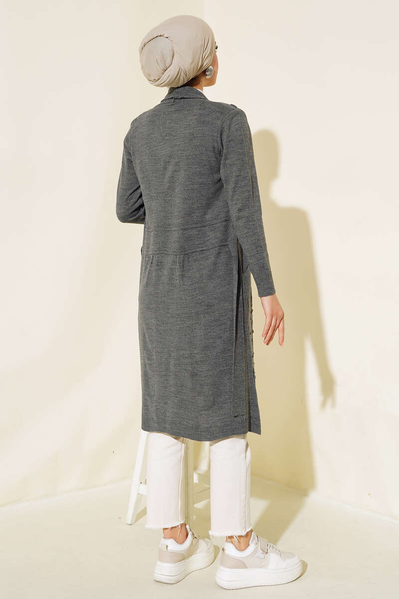 Yandan Dikişli Bağcıklı Hırka Füme