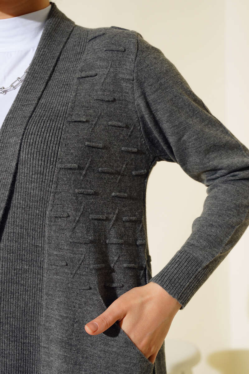 Yeni sezon hırka modelimiz sizlerle beraber. Hırkamız önü kabartma desenlidir. Uzun modeldir. Hırkamızın iki adet cebi vardır. İki adet yanlarında bağcığı vardır. Sade ve sportif hırka modelimiz kombinlerinize çok yakışacak.
