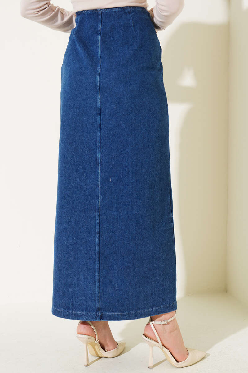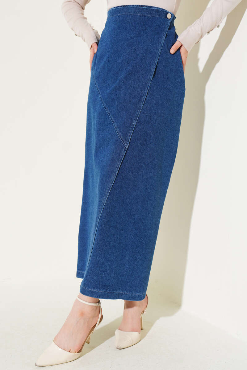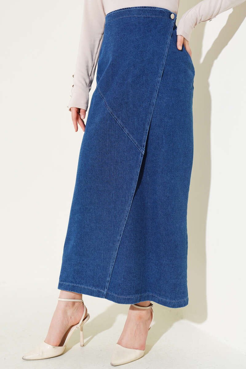 Kemer Aksesuarlı Ekoseli Etek Lacivert