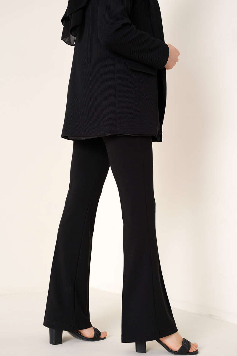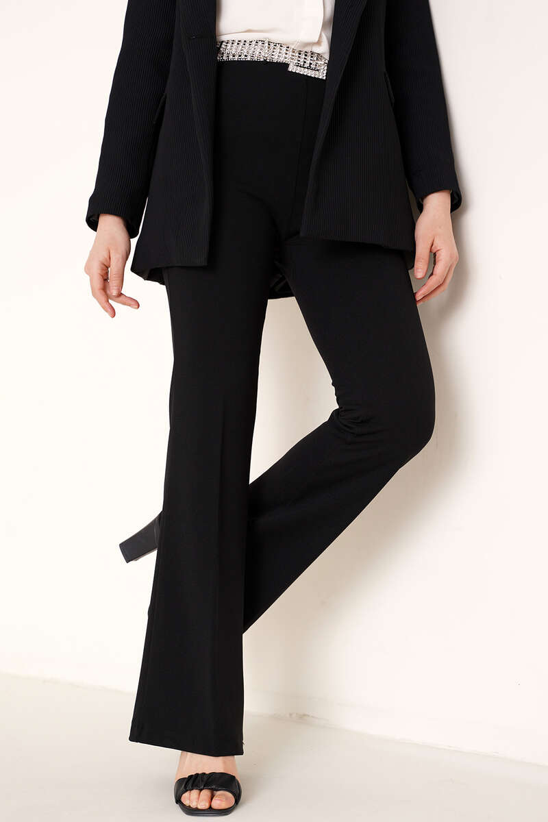 Yanda fermuarlı olan yüksek bel esneme payı olan harika bir ispanyol paça ile karşınızdayız. Cepsiz ve kemer kopçası yoktur. Esneme payı vardır. Rahat ve kullanışlı bir parçadır.