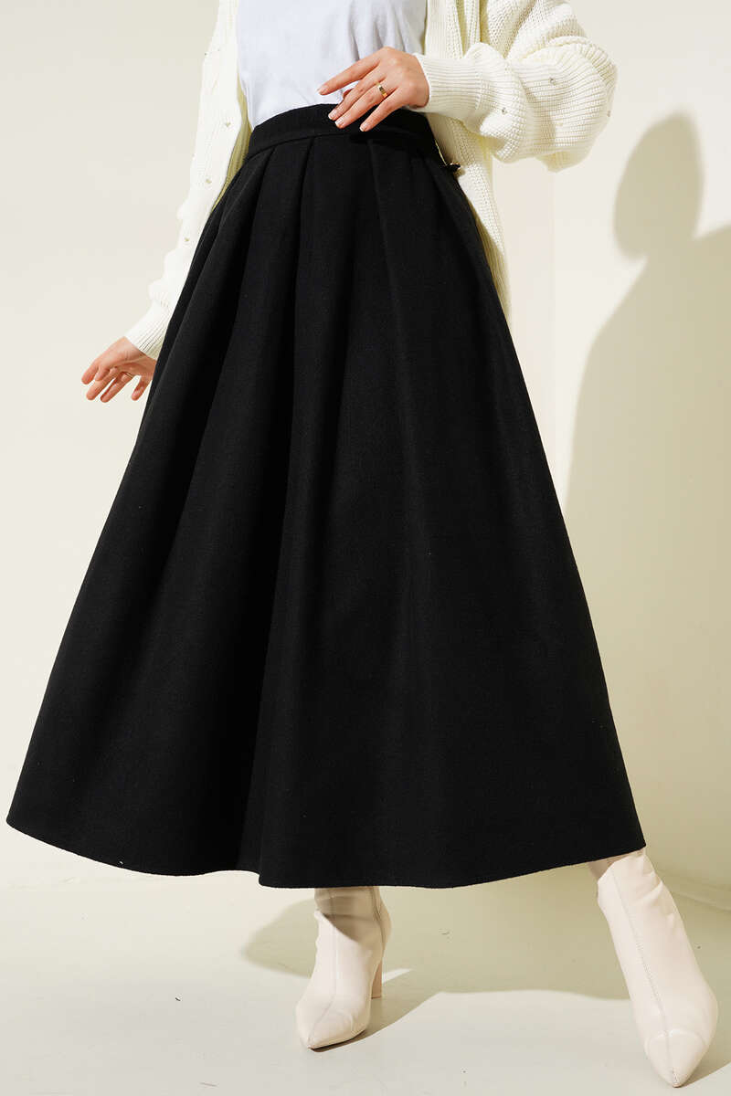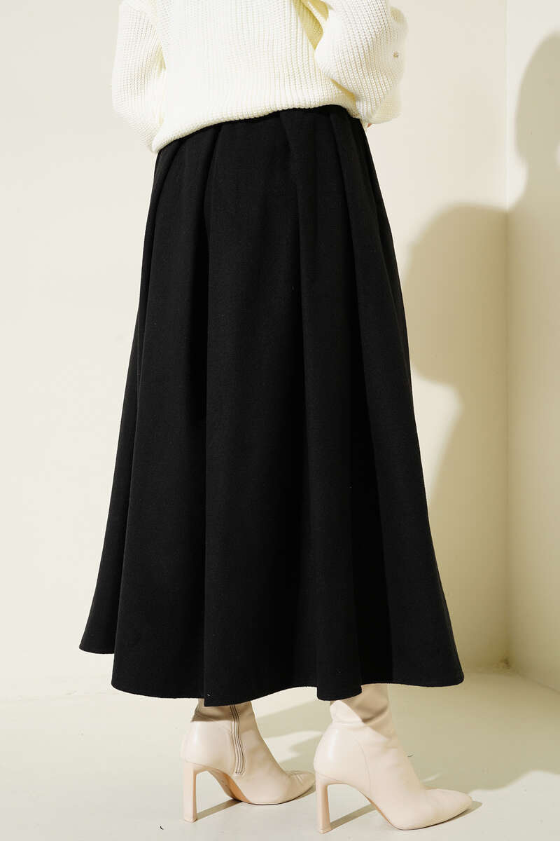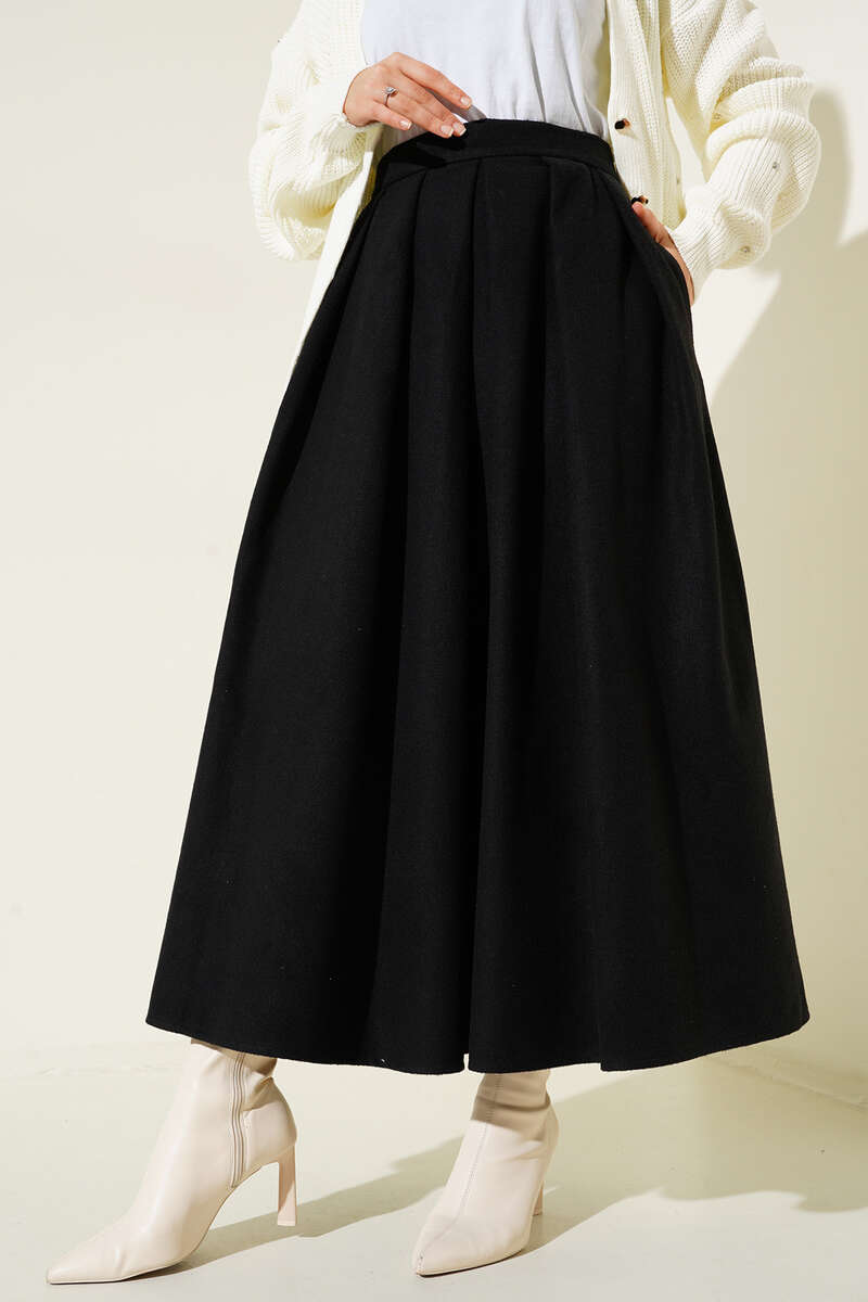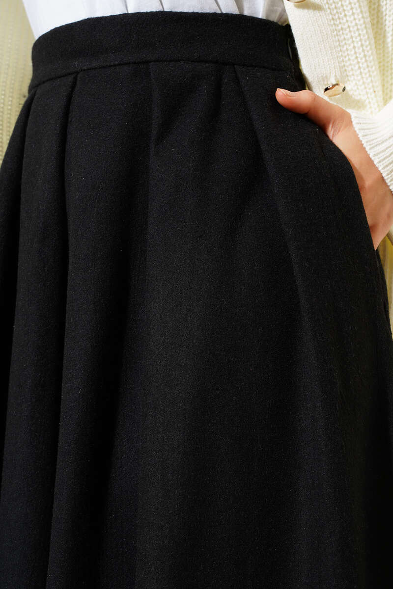 Yandan Fermuarlı Kaşe Etek Siyah