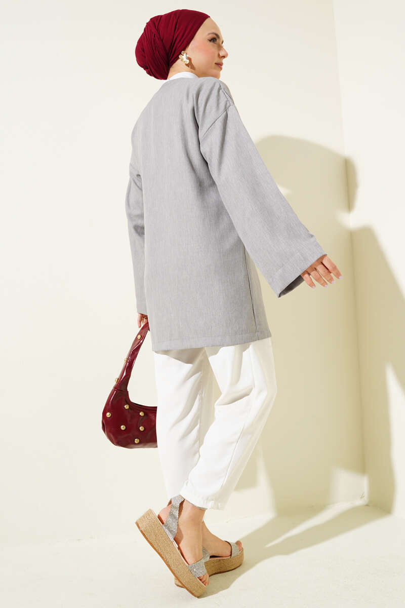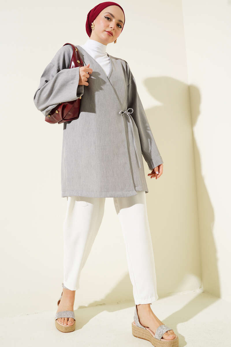 Yandan İp Bağlamalı Kimono Gri