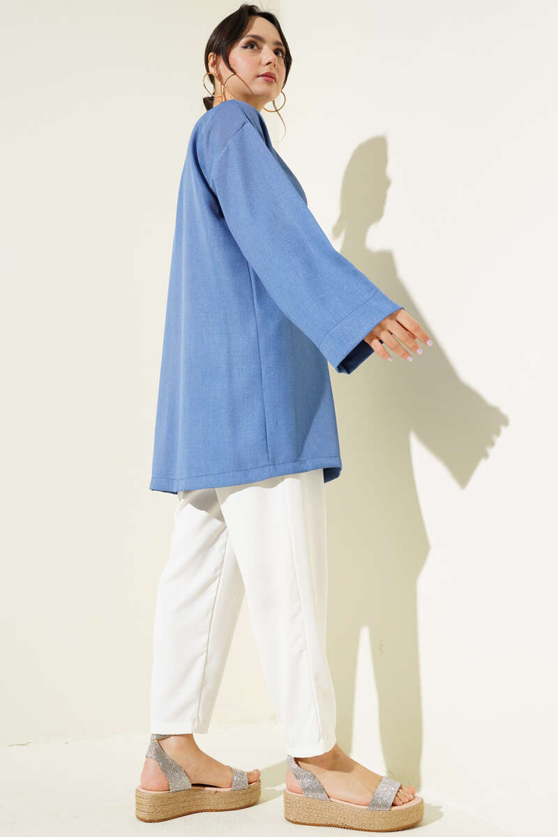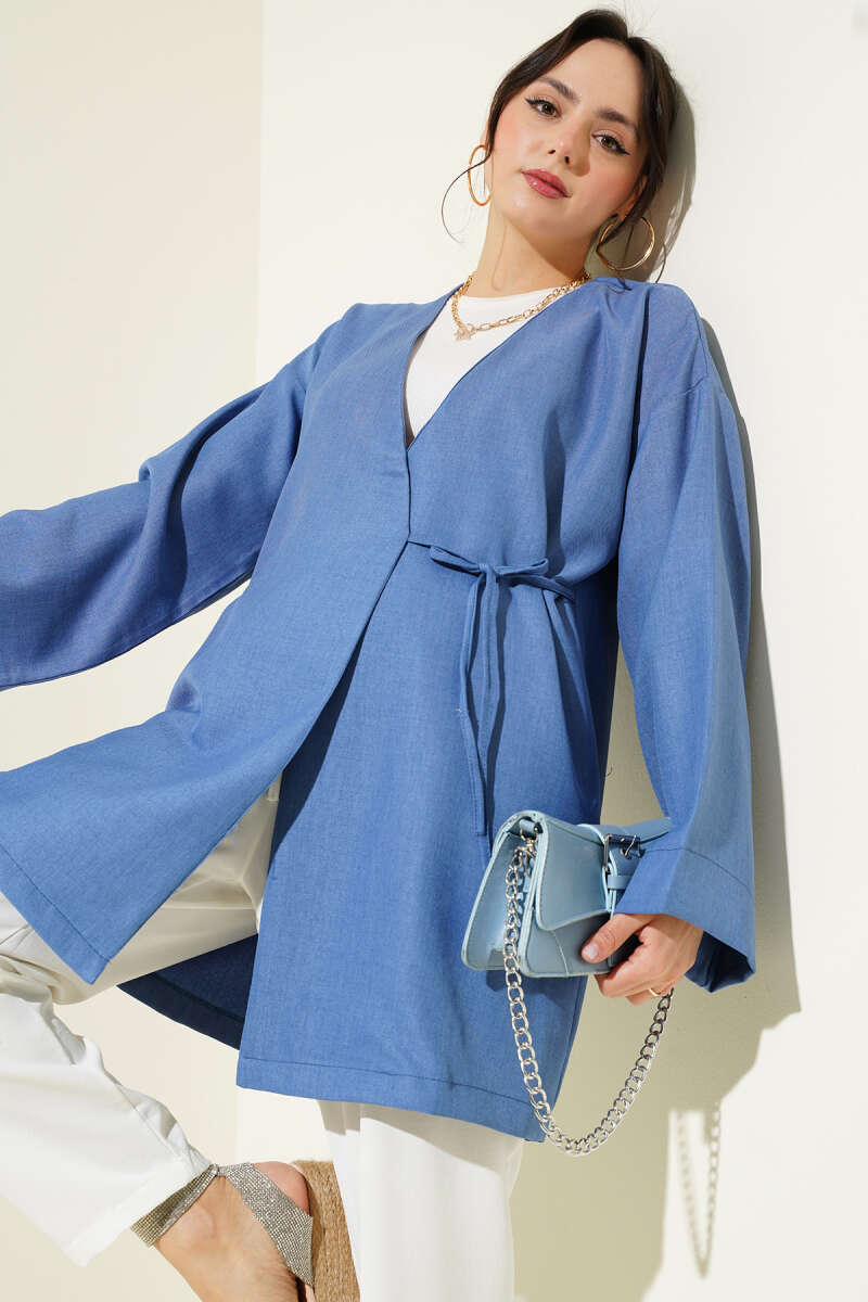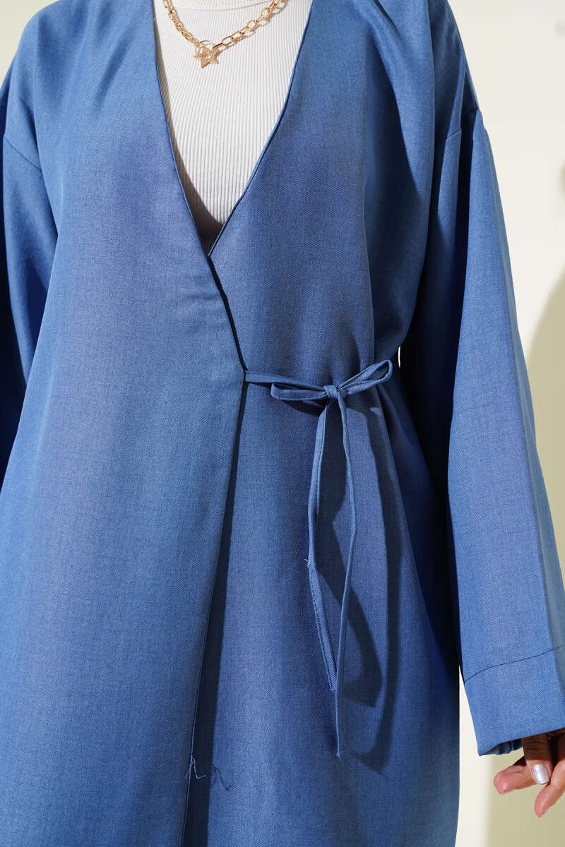 Yandan İp Bağlamalı Kimono Mavi