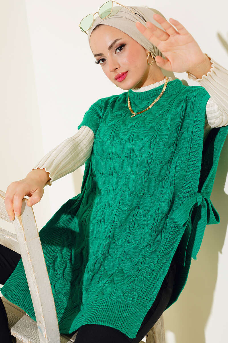 Yeni sezon triko süveterimiz şık duruşuyla kombinlerinizde tamamlayıcı parça olacaktır. Yanları kuşaklı bağlmalı olan süveterimiz rahat kullanımıyla sezonun favorileri arasındadır.
