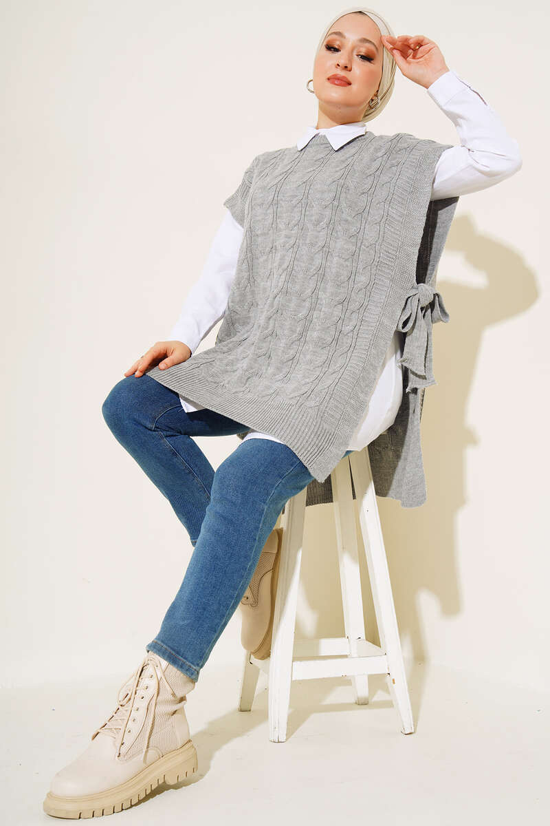 Yeni sezon triko süveterimiz şık duruşuyla kombinlerinizde tamamlayıcı parça olacaktır. Yanları kuşaklı bağlmalı olan süveterimiz rahat kullanımıyla sezonun favorileri arasındadır.
