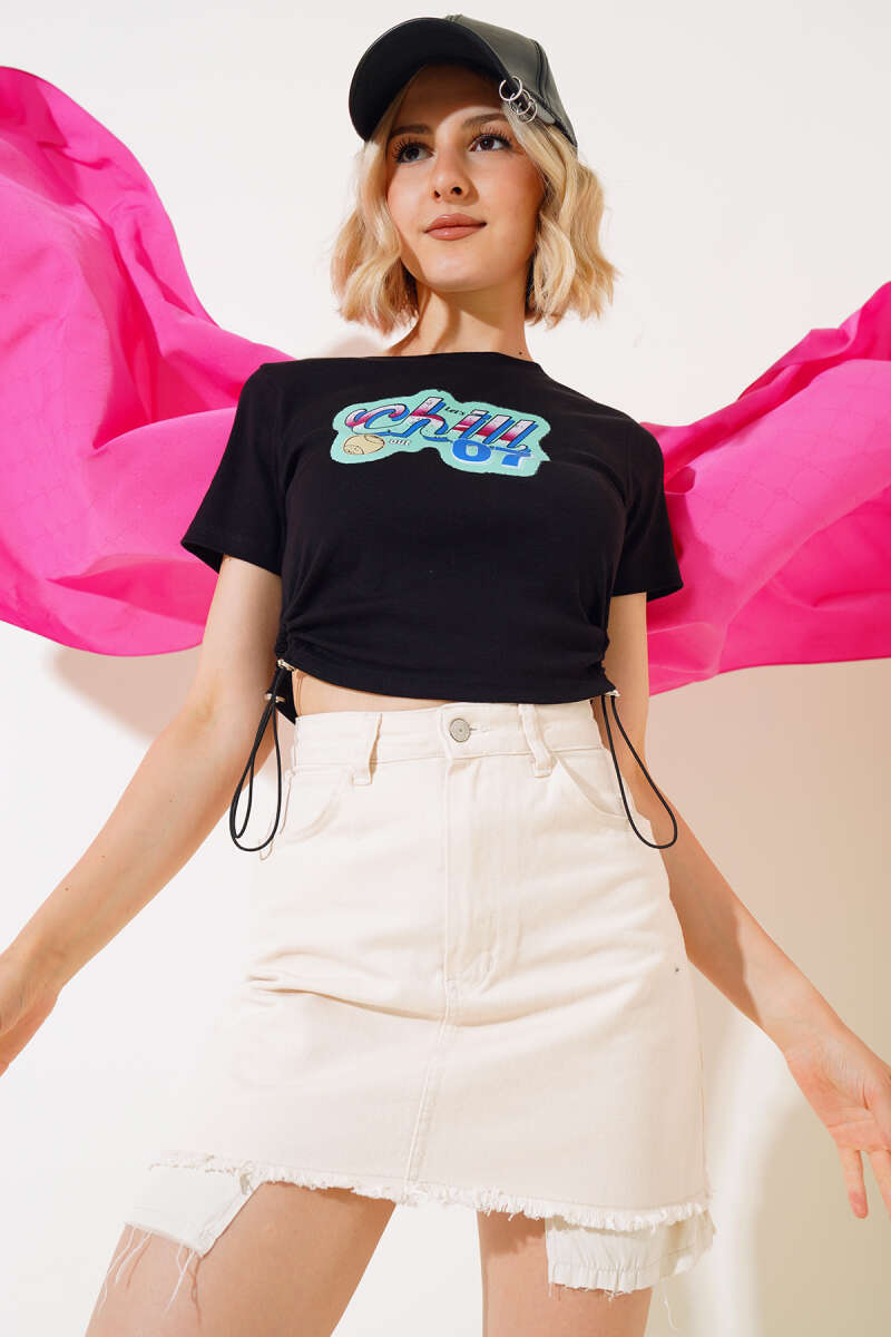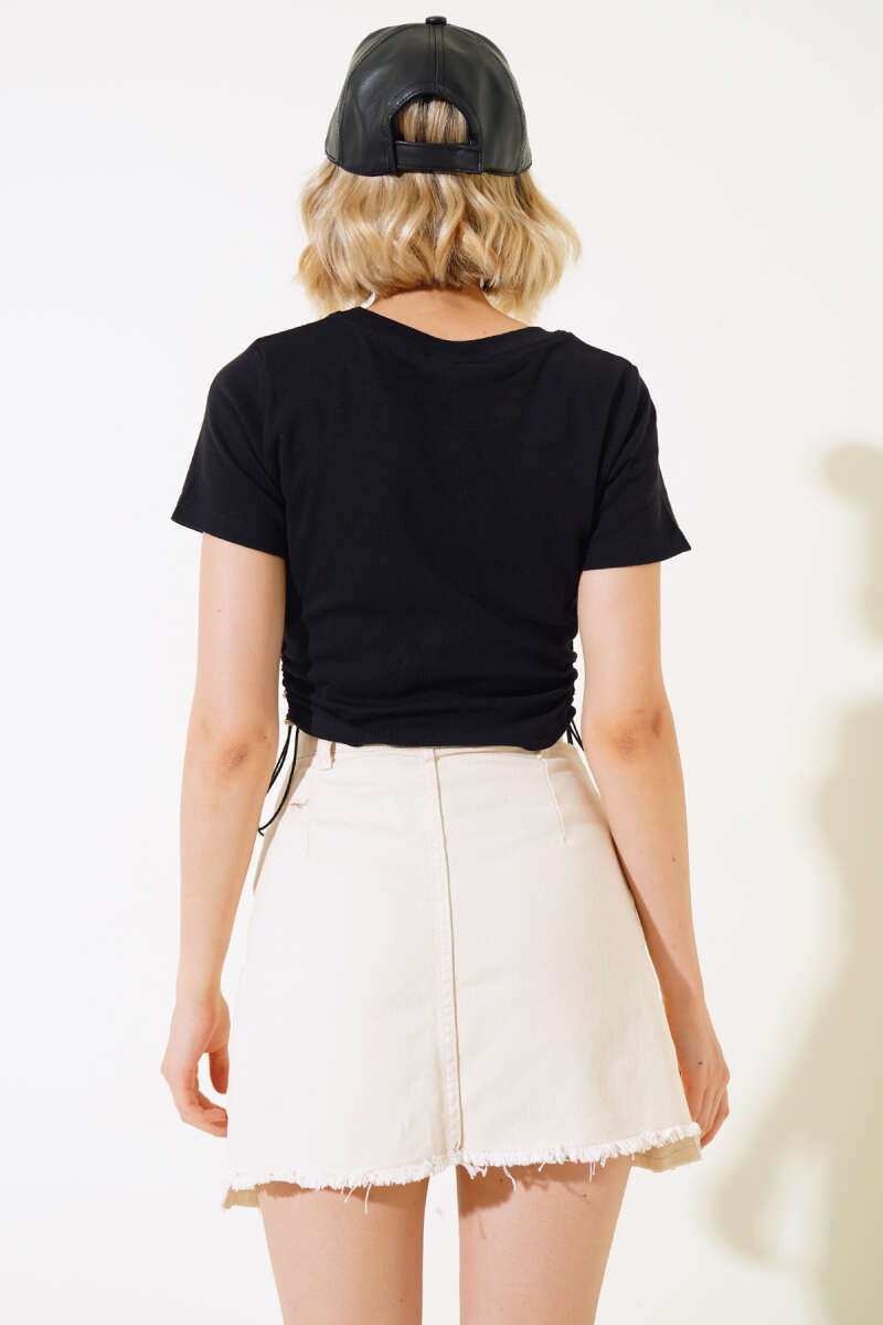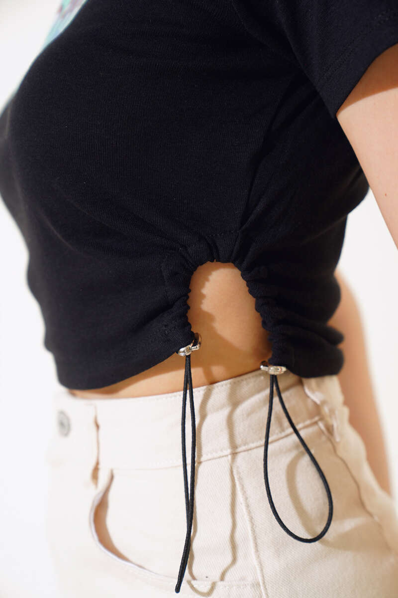 Kuşaklı Beli Lastikli Kot Pantolon Siyah