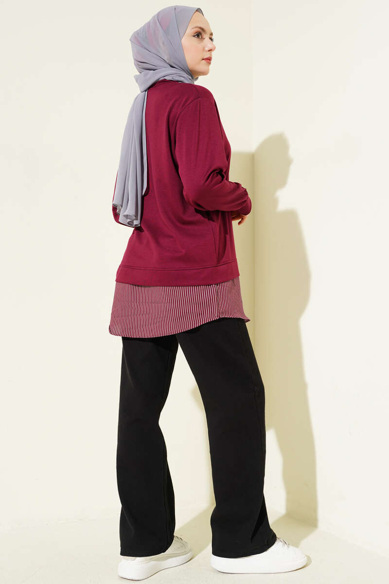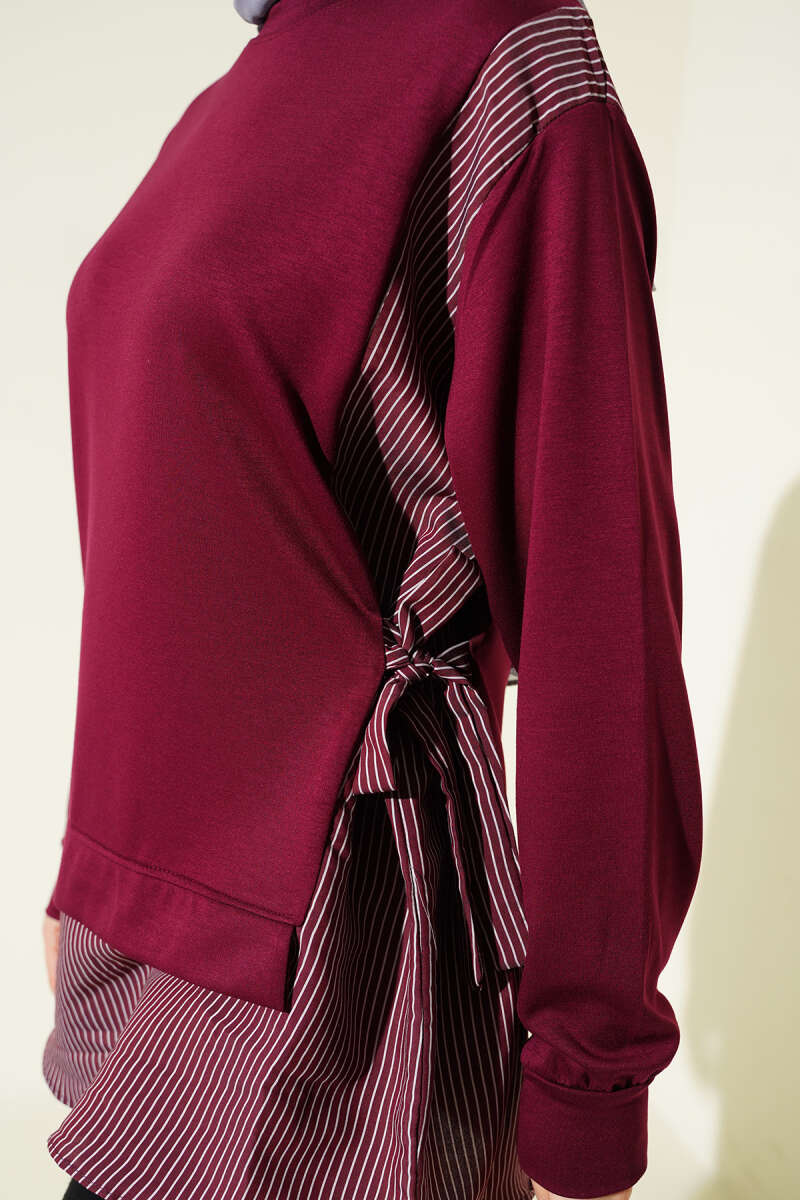 Yanı Bağlamalı Çizgi Detaylı Tunik Bordo