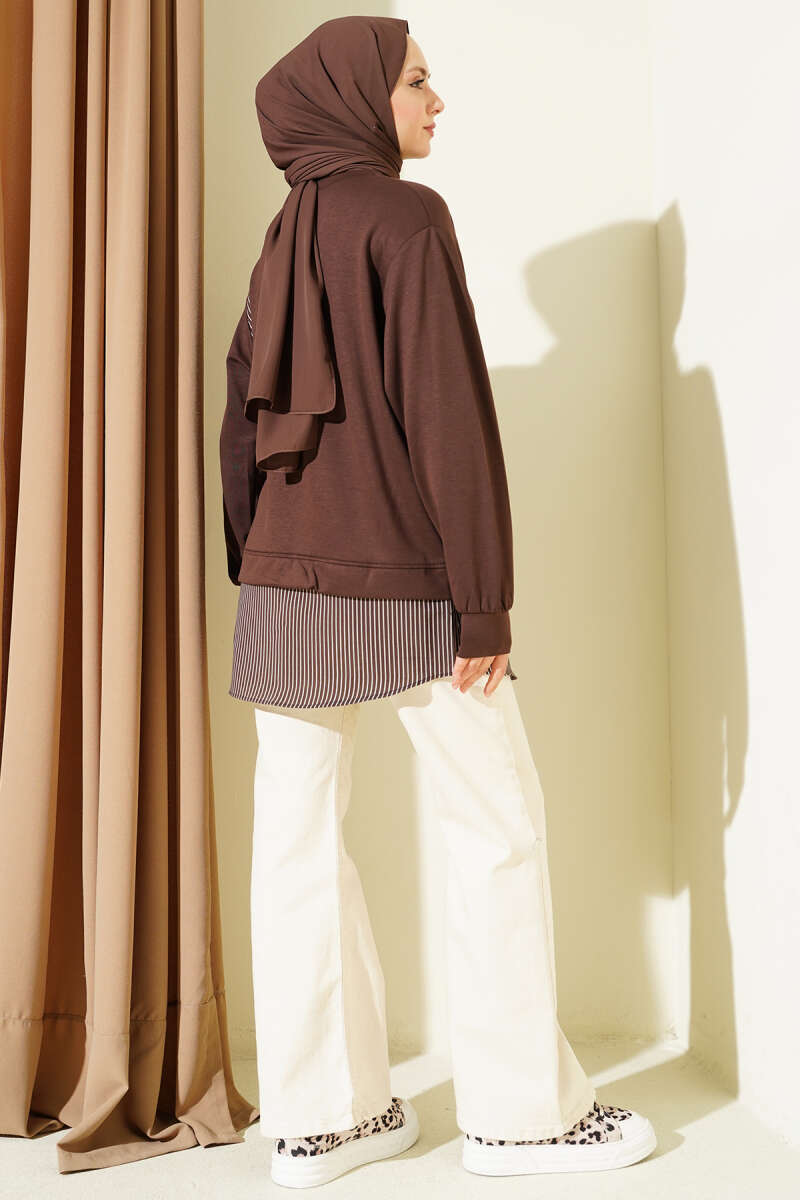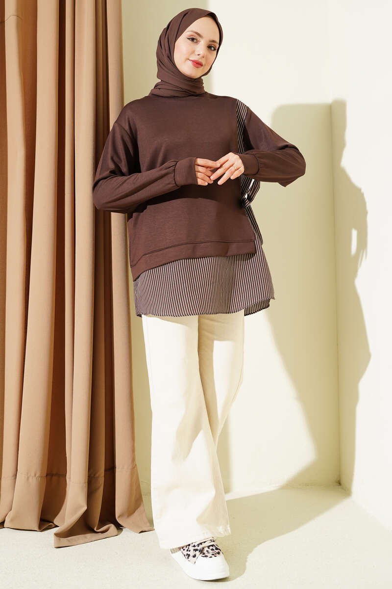 Yanı Bağlamalı Çizgi Detaylı Tunik Kahve