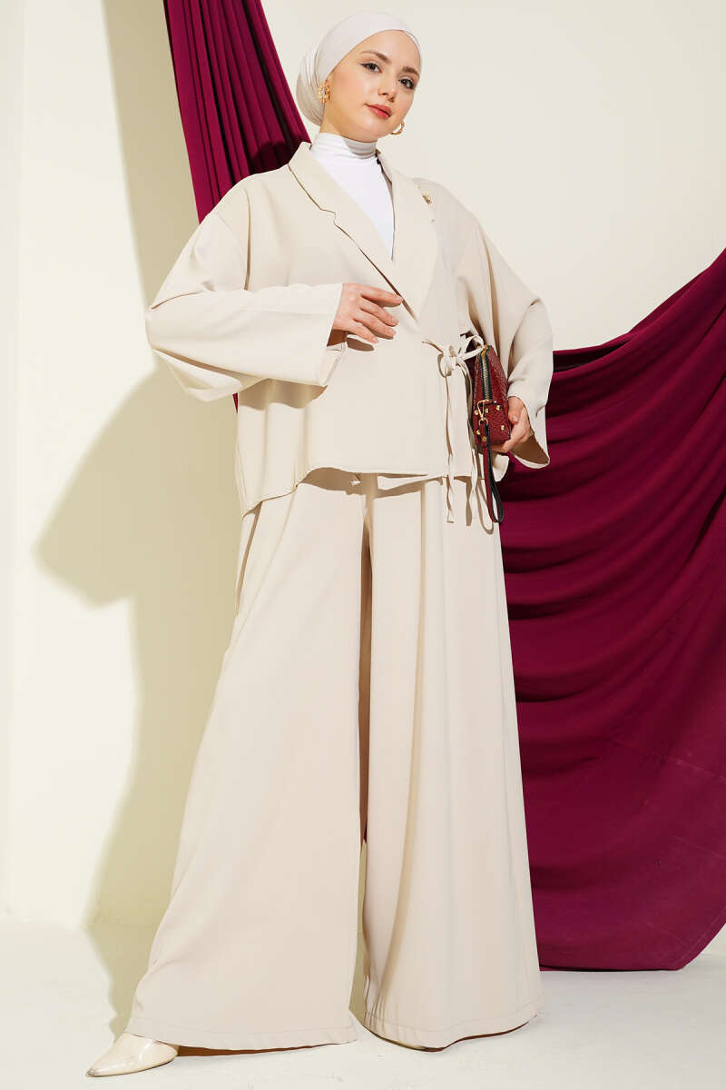 Hakim Yaka Pelerinli Loyşa İkili Takım Bej