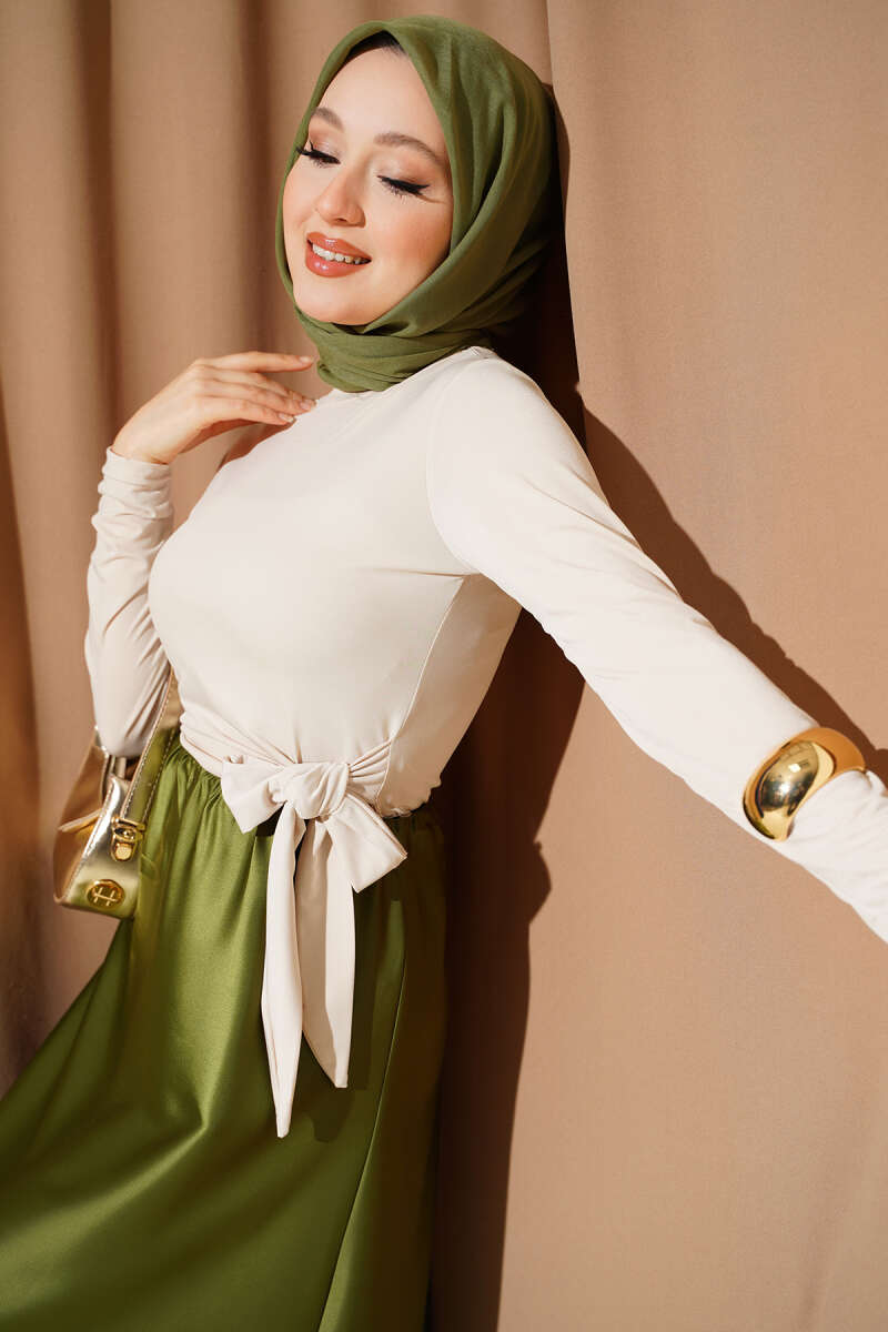 Yumuşak ve esnek sandy kumaş dokusuyla vücudu zarifçe saran konforlu bir yapıya sahiptir. Bel kısmında yer alan modern yanı bağlamalı kuşak detayı, tasarıma hareket katarken silüetinizi dilediğiniz gibi vurgulamanıza olanak tanır. Minimalist ve sade kesimi sayesinde hem kumaş pantolonlarla ofis şıklığında hem de eteklerle özel gün kombinlerinde çok yönlü bir kullanım sunar.