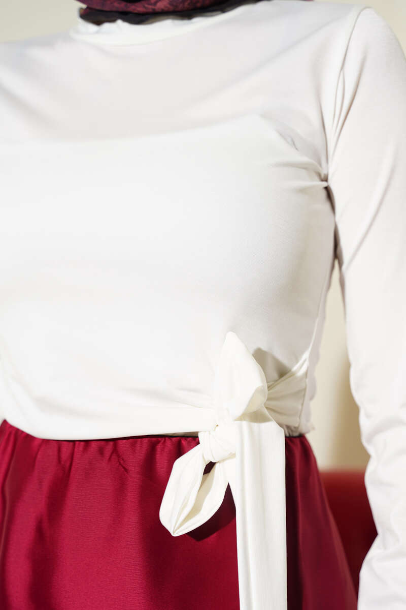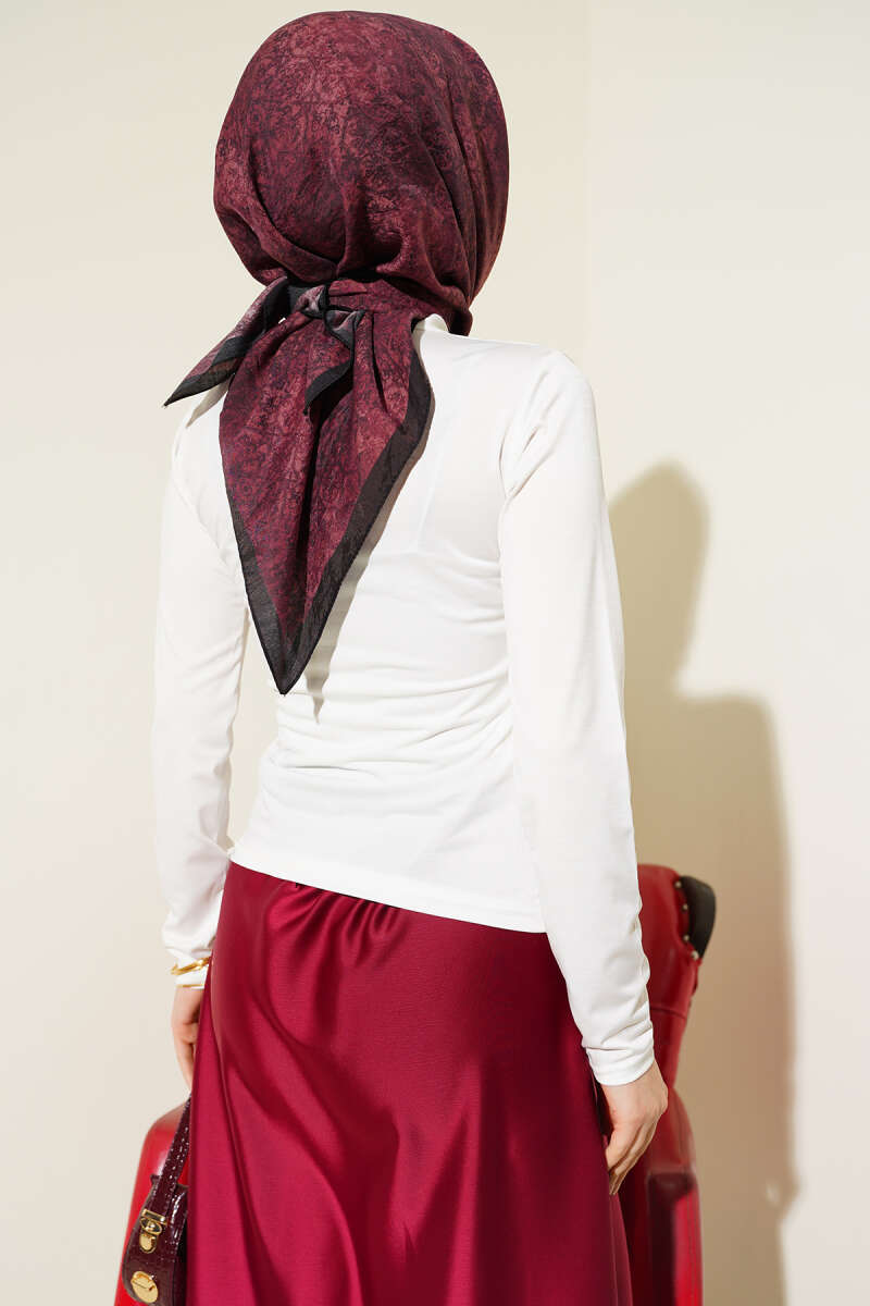 Kare Yaka Uzun Kol Sandy Crop Bordo
