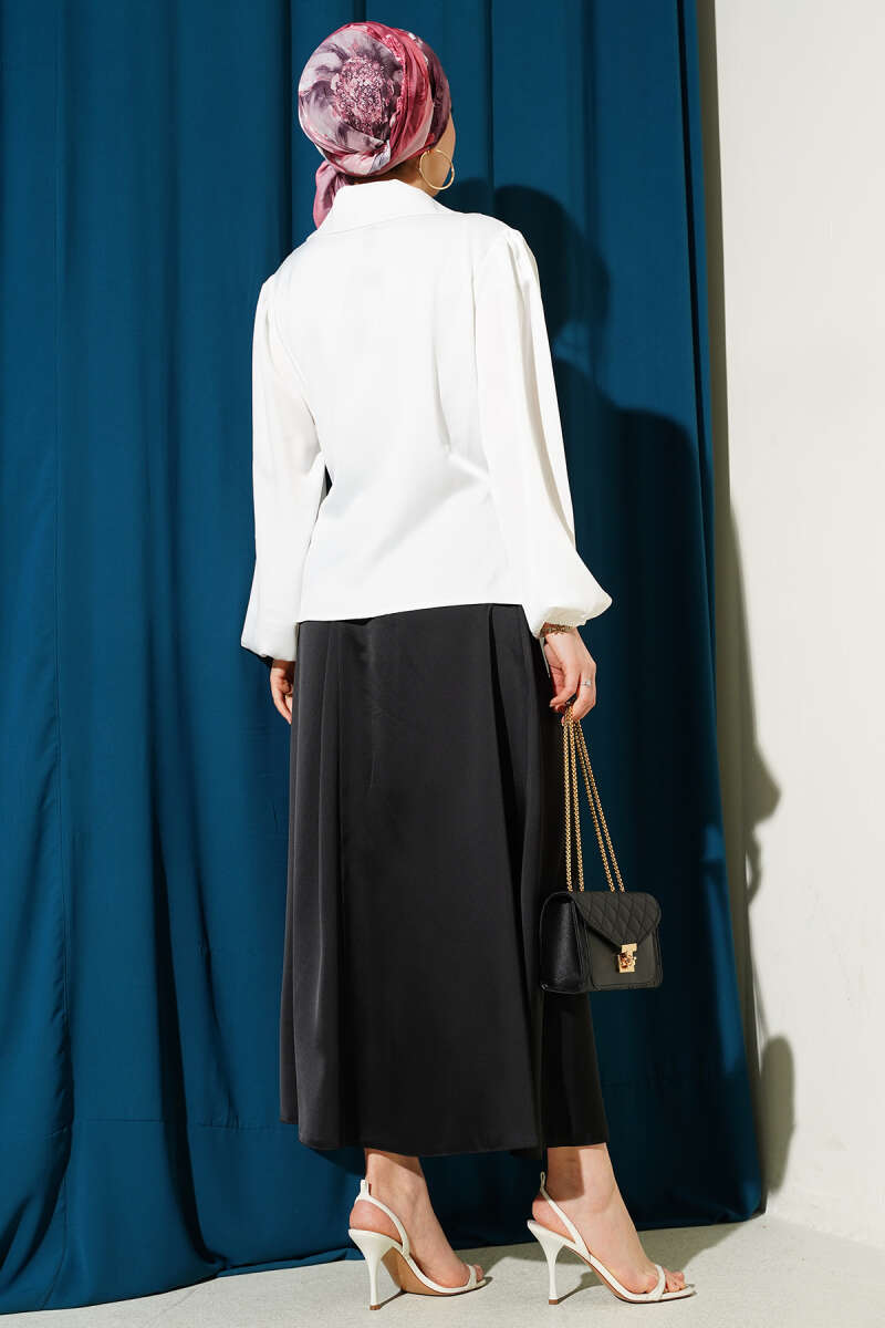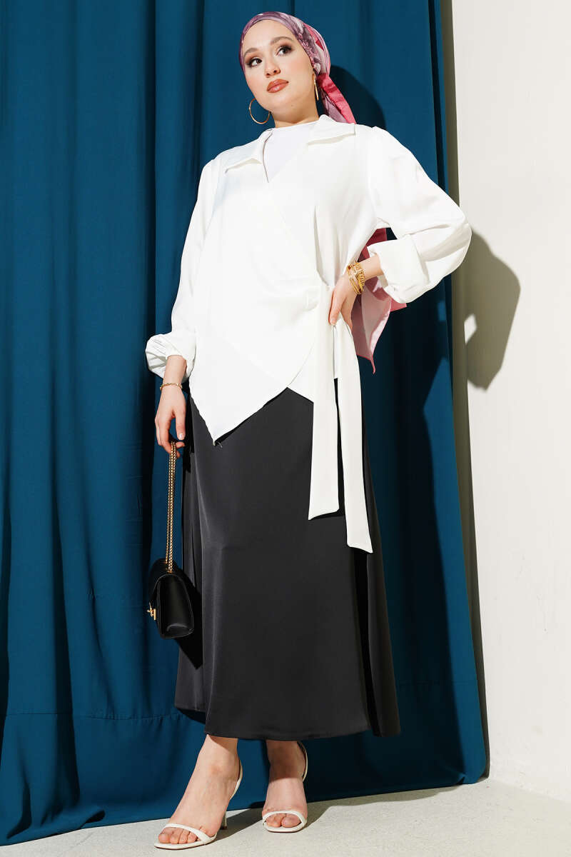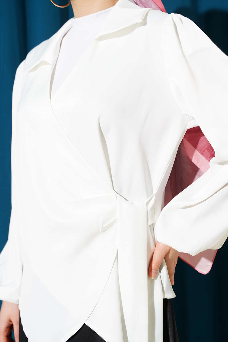 Yanı Bağlamalı Saten Bluz Ekru