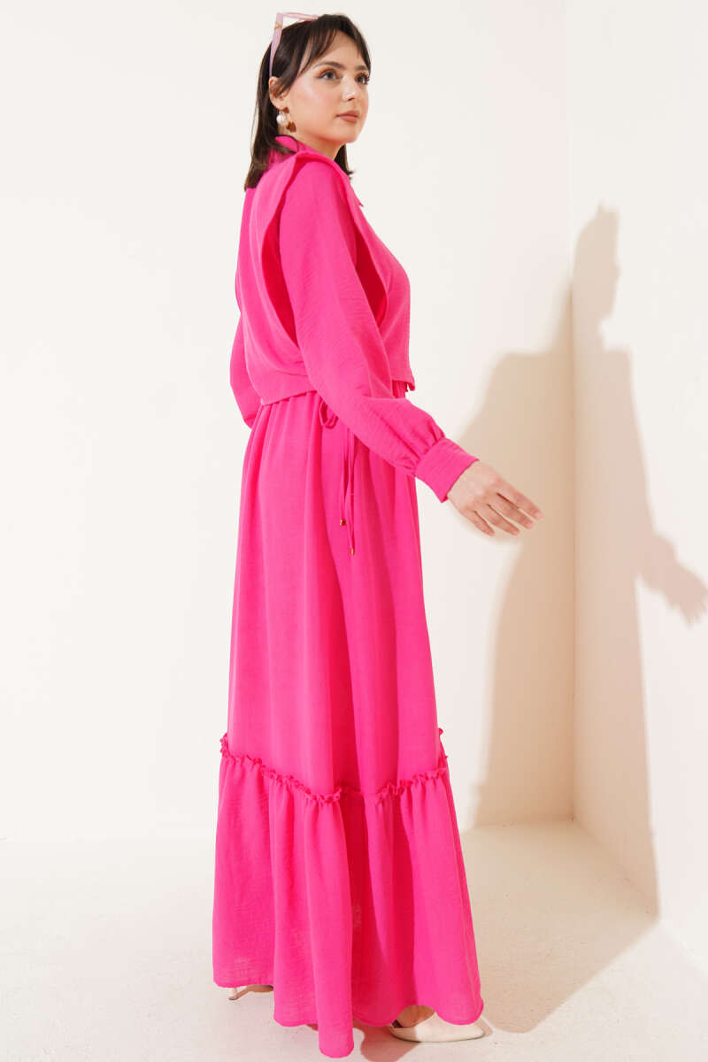 Gül Detaylı Pelerinli Abiye Elbise Pudra