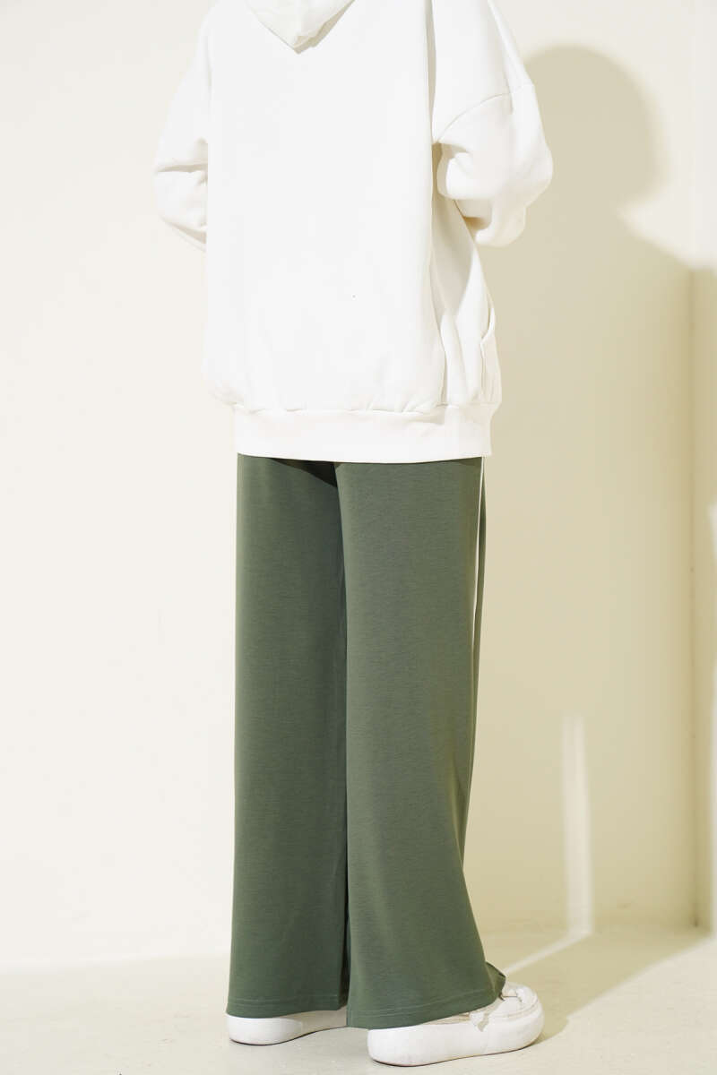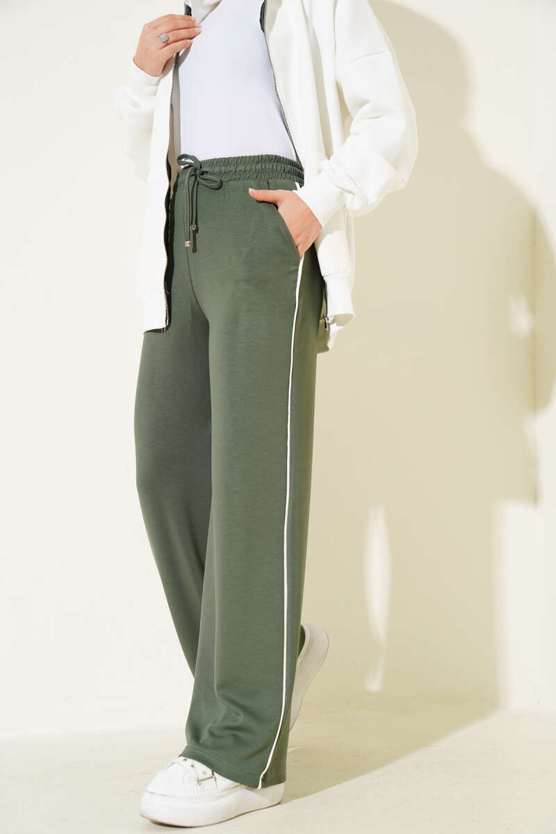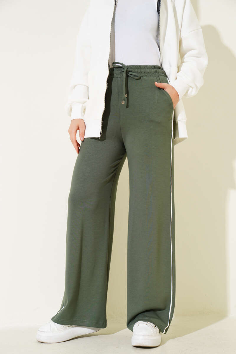 Yanı Biyeli Bel Lastikli Pantolon Haki