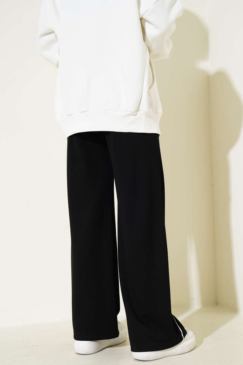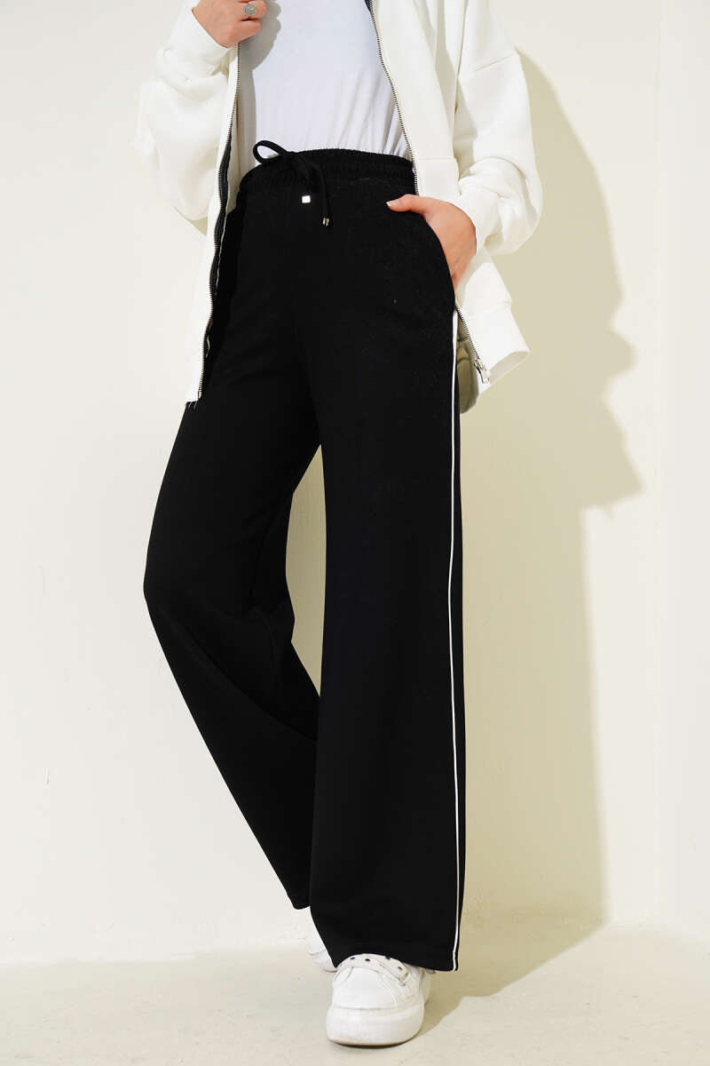 Yanı Biyeli Bel Lastikli Pantolon Siyah
