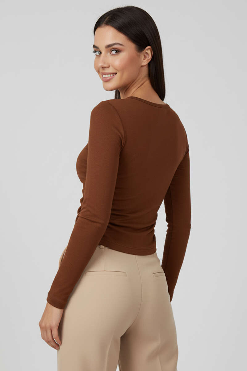 V Yaka Triko Kazak Ekru
