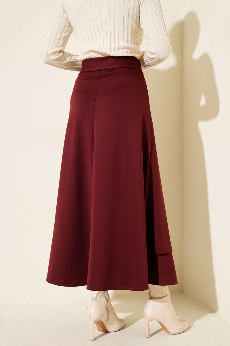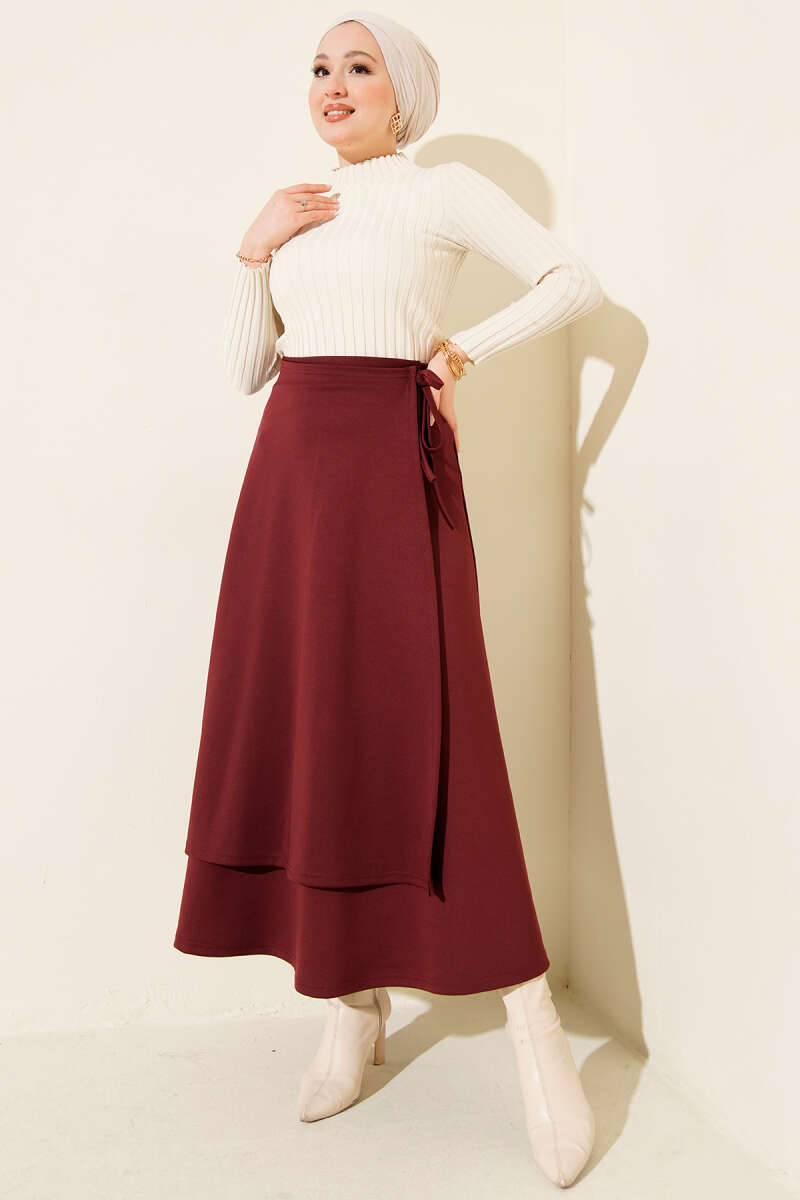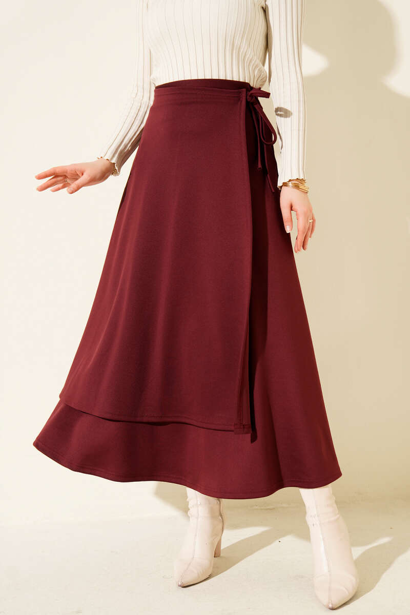 Yanı İp Bağcıklı Scuba Etek Bordo