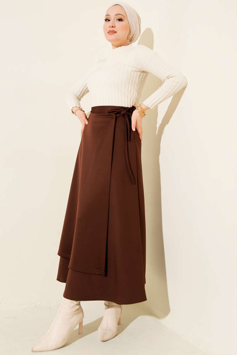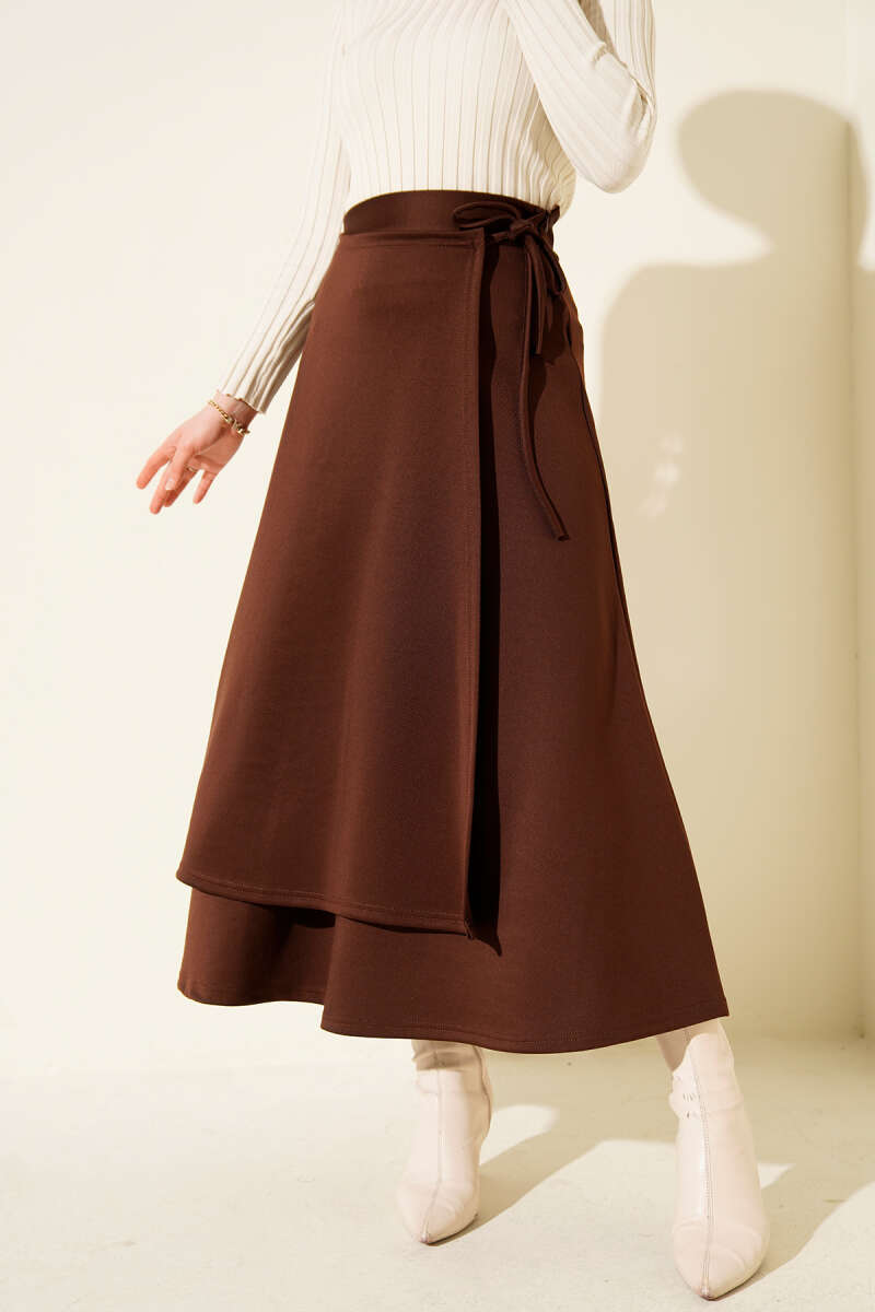 Yanı İp Bağcıklı Scuba Etek Kahve