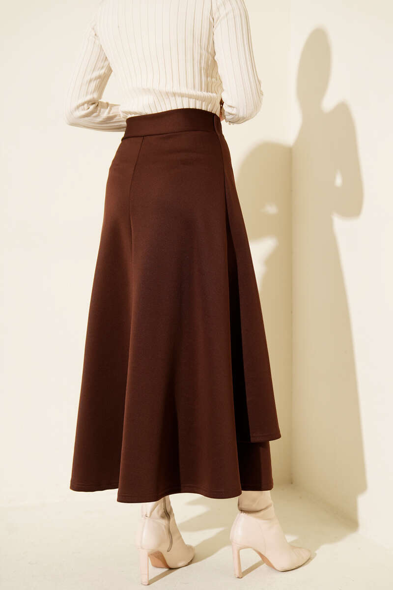 Kazayağı Desenli Etek Kahve