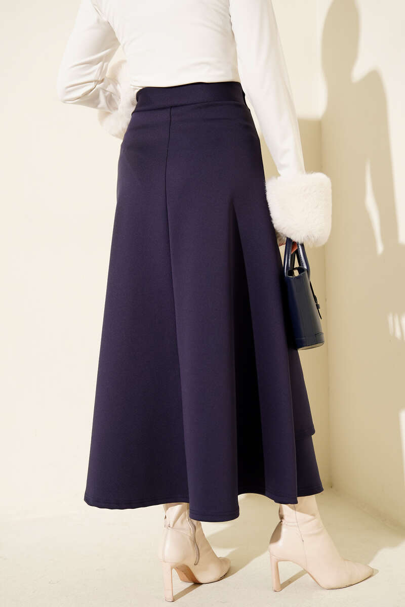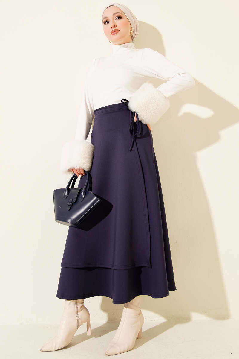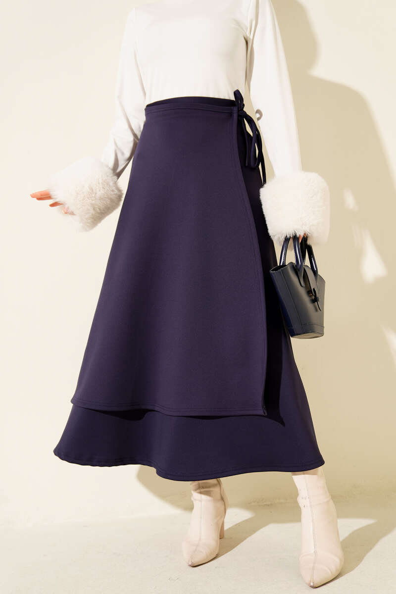 Yanı İp Bağcıklı Scuba Etek Lacivert