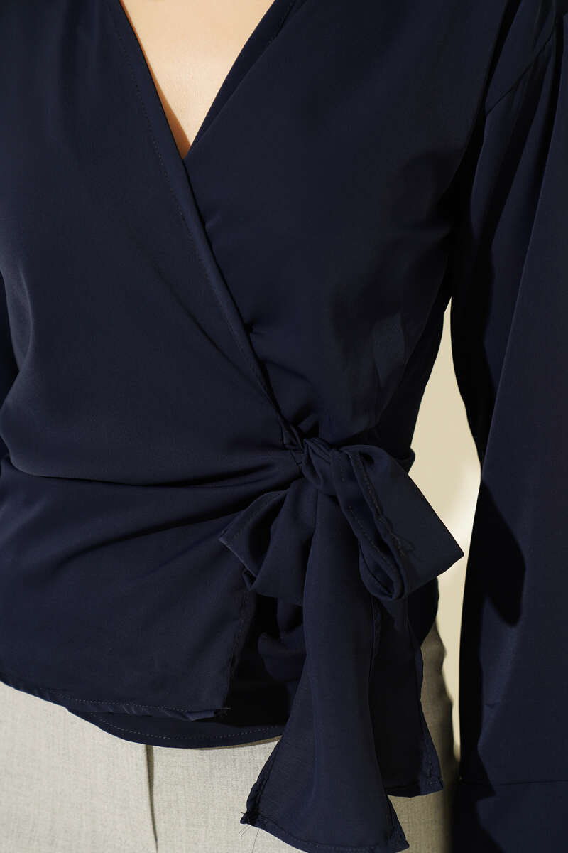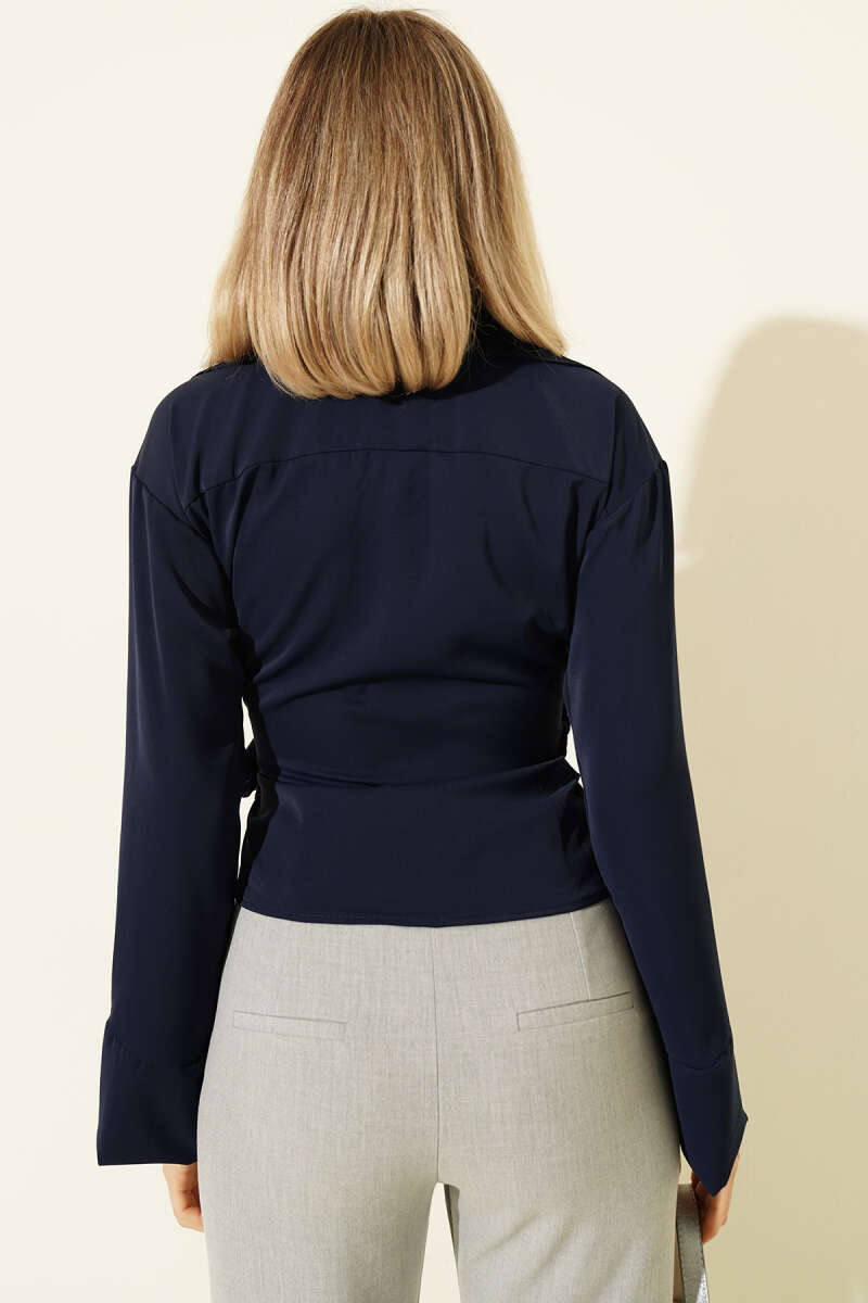 Yanı Kuşak Bağlamalı Kısa Gömlek Lacivert