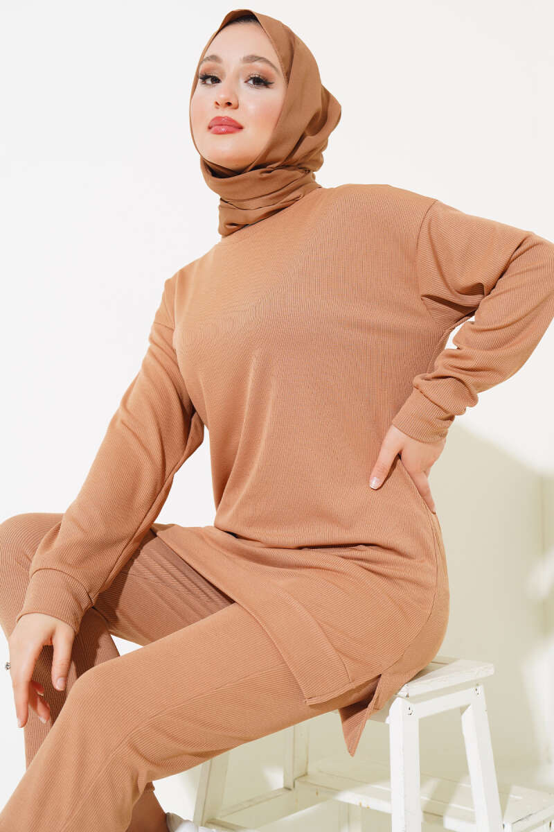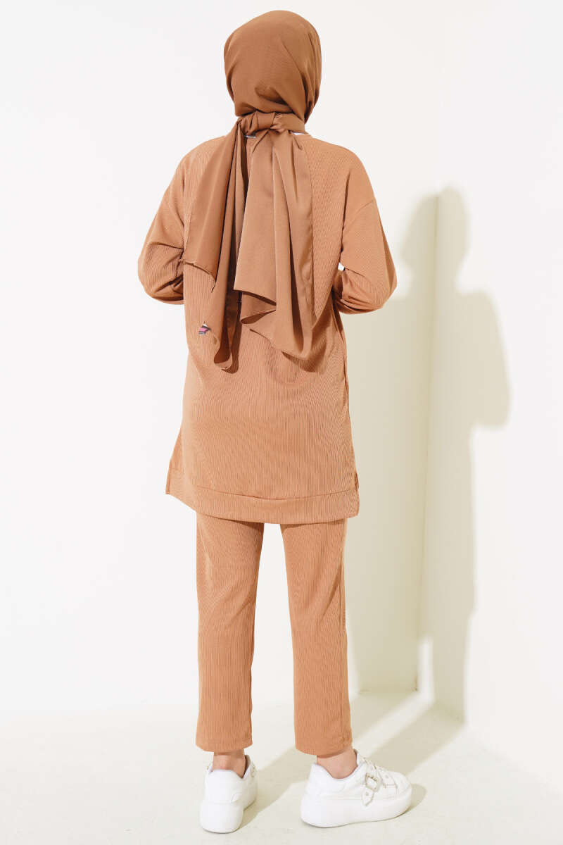 Uzun Pensli Kemerli İkili Takım Kahve