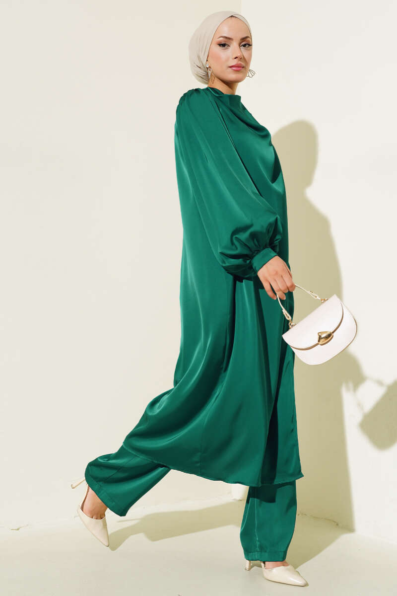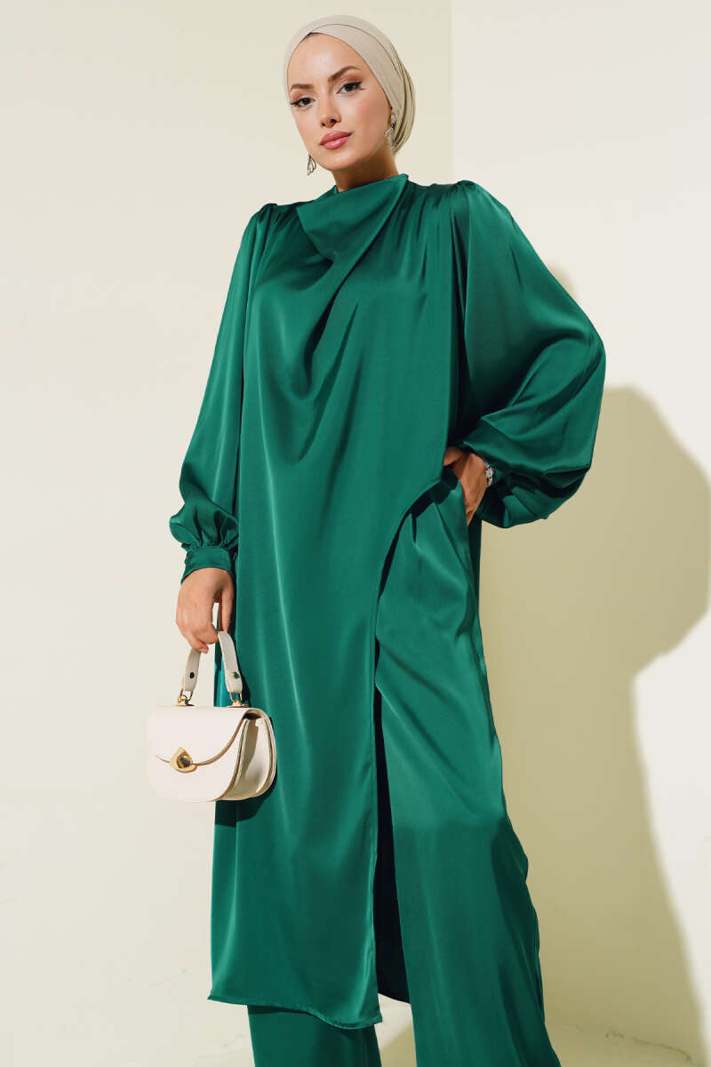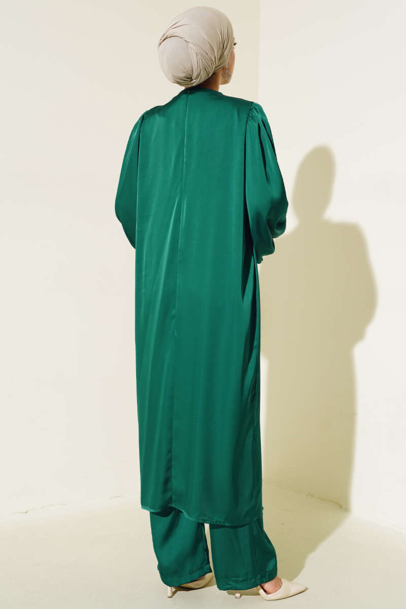 Düğmeli Jileli Triko İkili Takım Zümrüt