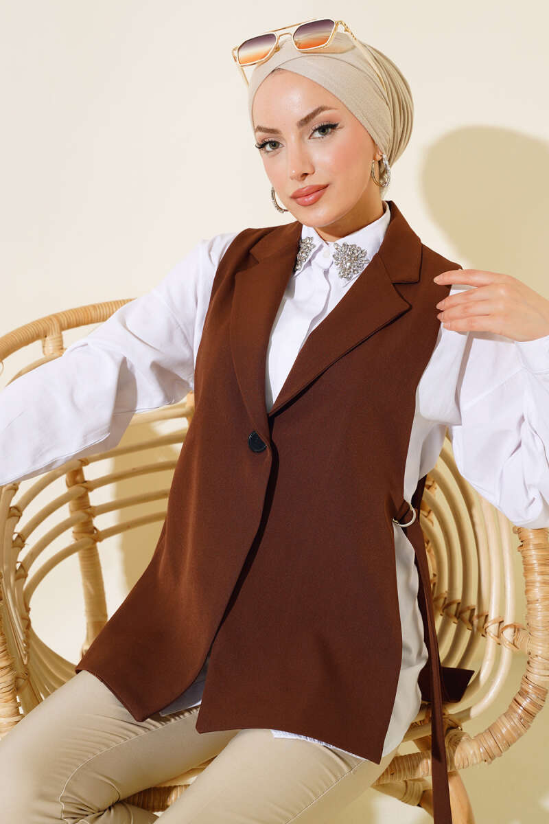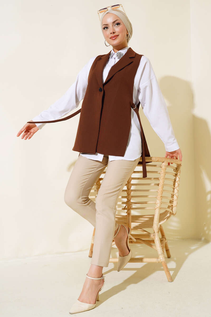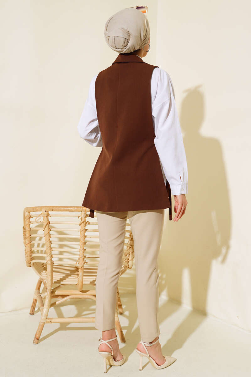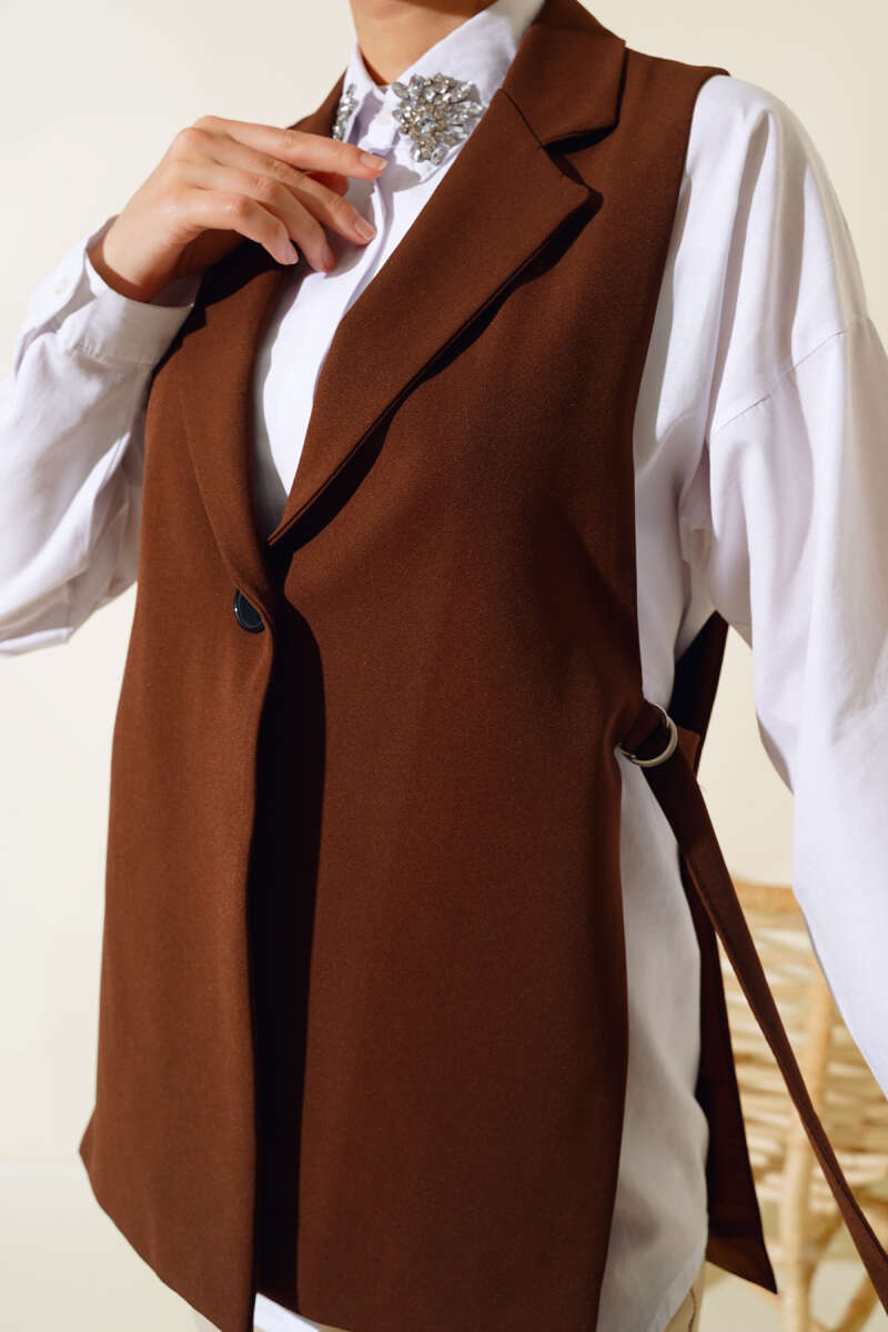 Yanları Açık Yelek Kahve