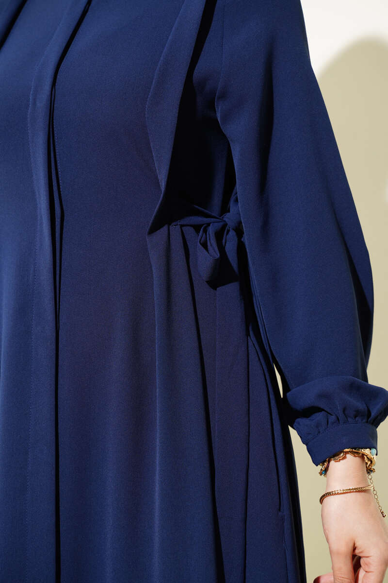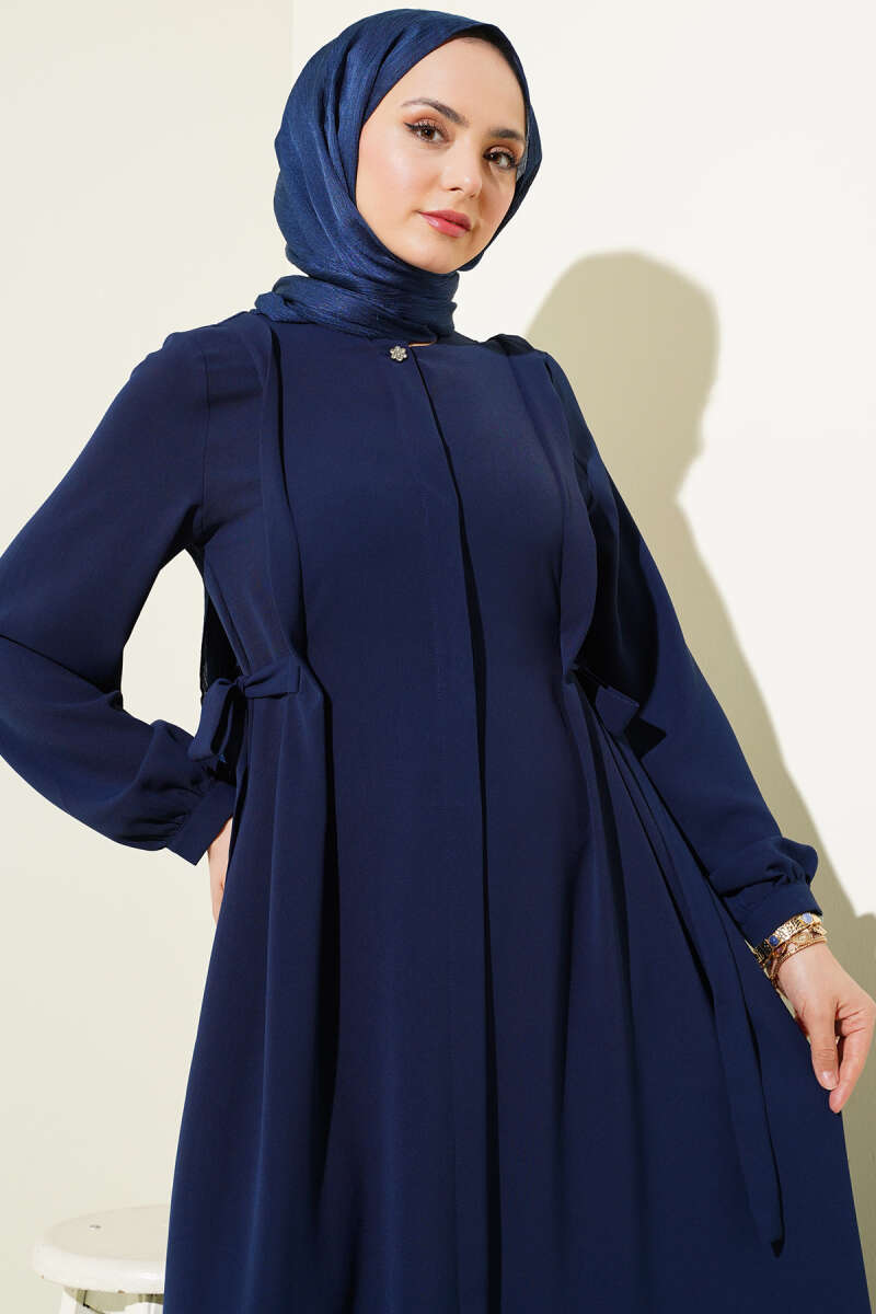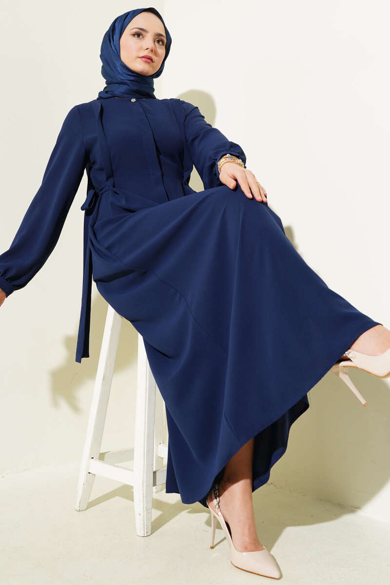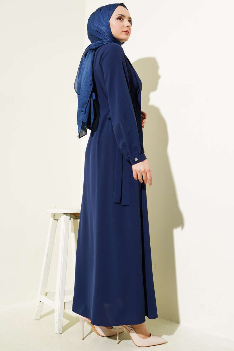 Yanları Bağlamalı Boydan Düğmeli Elbise Lacivert