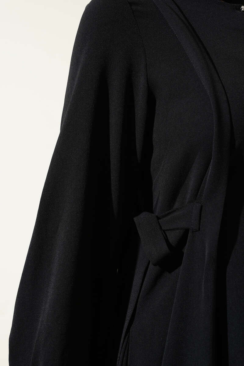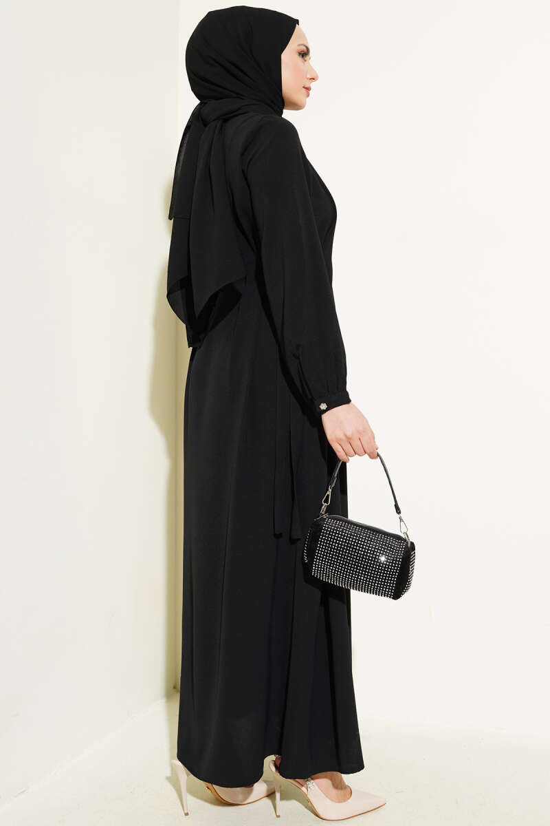 Omuz Pelerinli Taş Detaylı Abiye Elbise Siyah