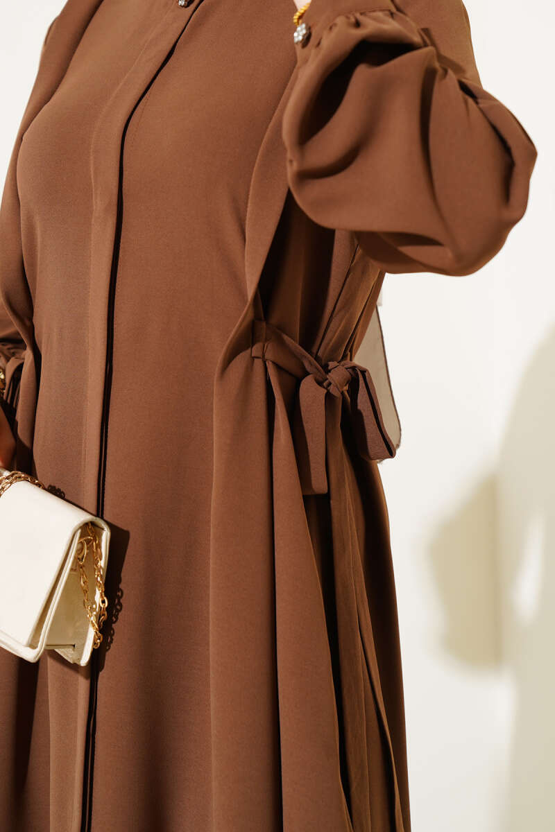 Kol Ucu Armalı İp Bağcıklı Elbise Kahve