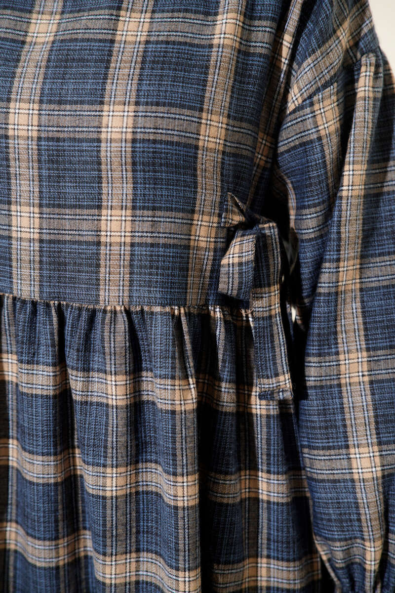 Yanları Bağlamalı Ekoseli Elbise Lacivert
