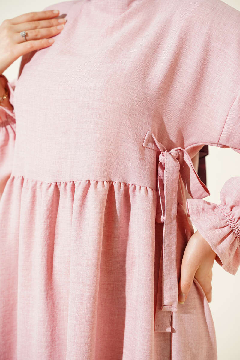 Yanları Bağlamalı Kloş Elbise Gül Kurusu